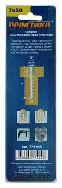 Сверло для мебельной стяжки ПРАКТИКА 774-948 для мебельной стяжки 7х50мм