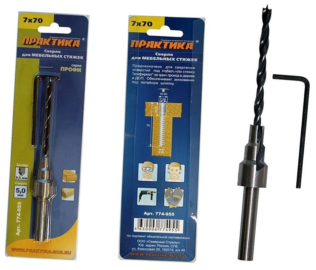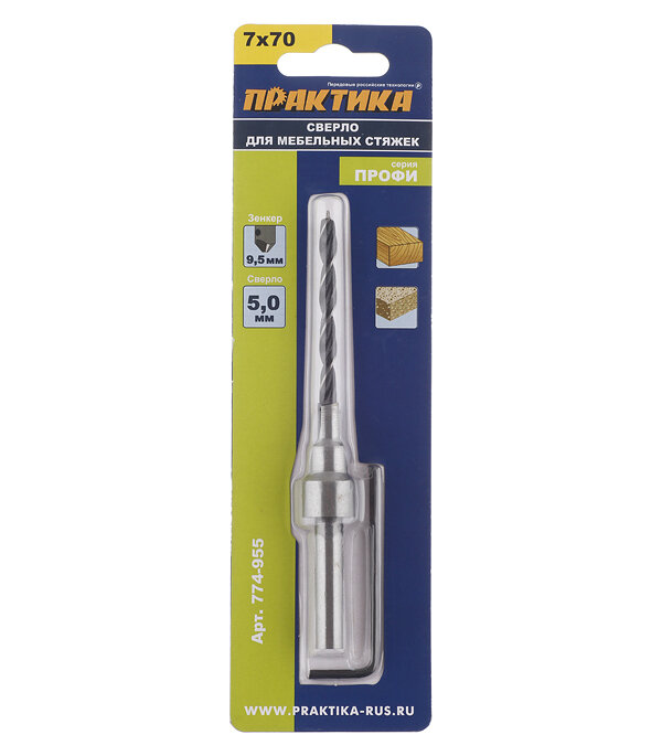 Сверло для мебельной стяжки ПРАКТИКА 774-955 для мебельной стяжки 7х70мм