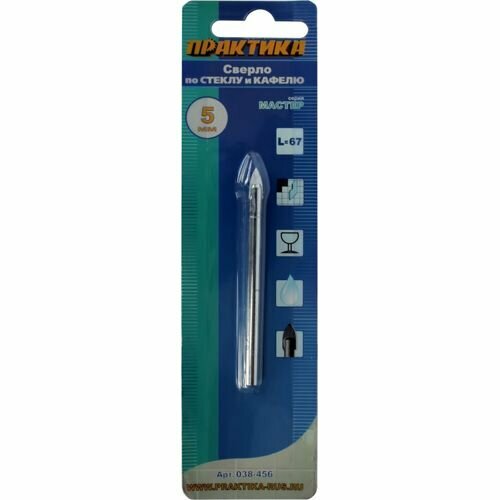 Сверло по стеклу ПРАКТИКА 038-456 5мм, по стеклу