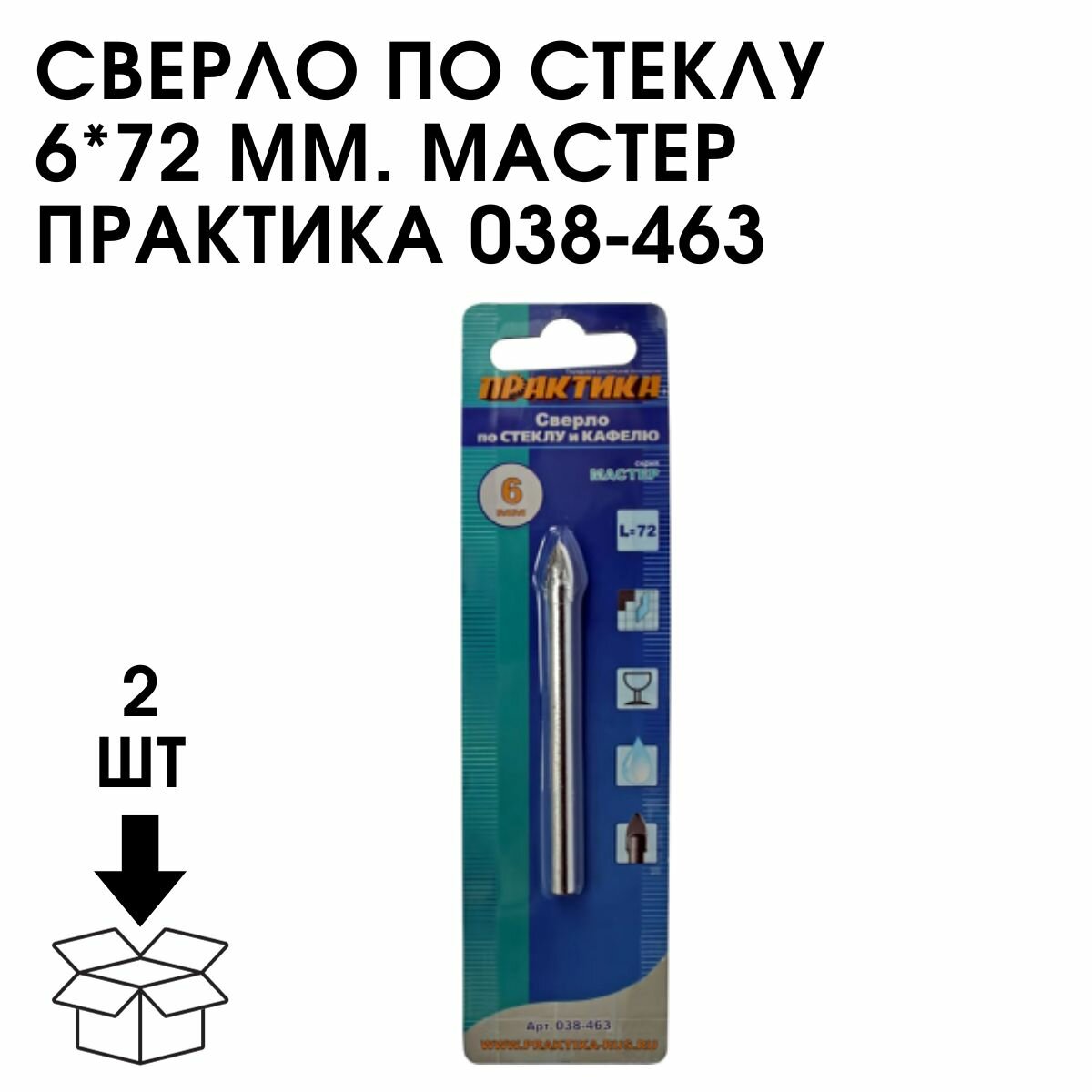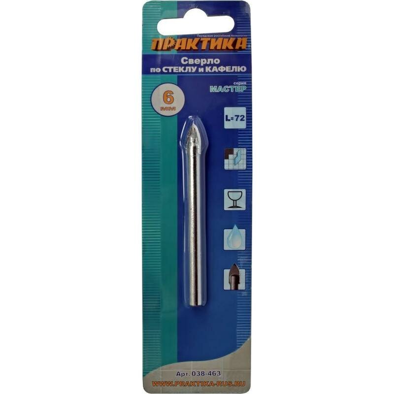 Сверло по стеклу ПРАКТИКА 038-463 6мм, по стеклу