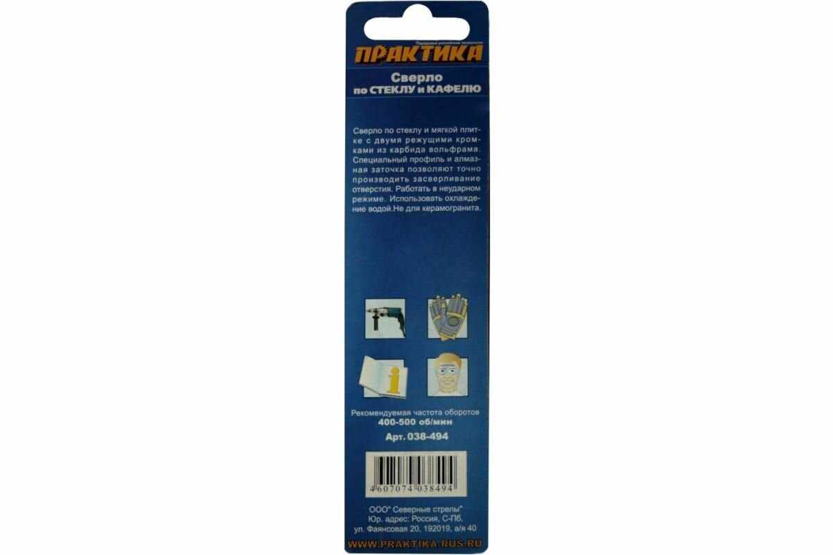 Сверло по стеклу ПРАКТИКА 038-494 12мм, по стеклу