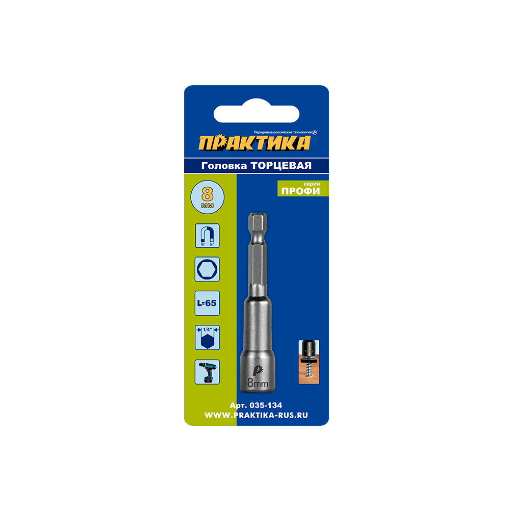 Магнитная головка торцевая ПРАКТИКА 035-134 8x65мм, хв.1/4''