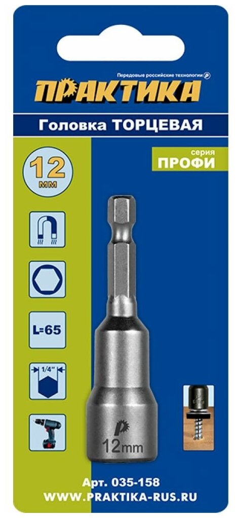 Магнитная бита ПРАКТИКА 035-158 12x65мм, хв.1/4''