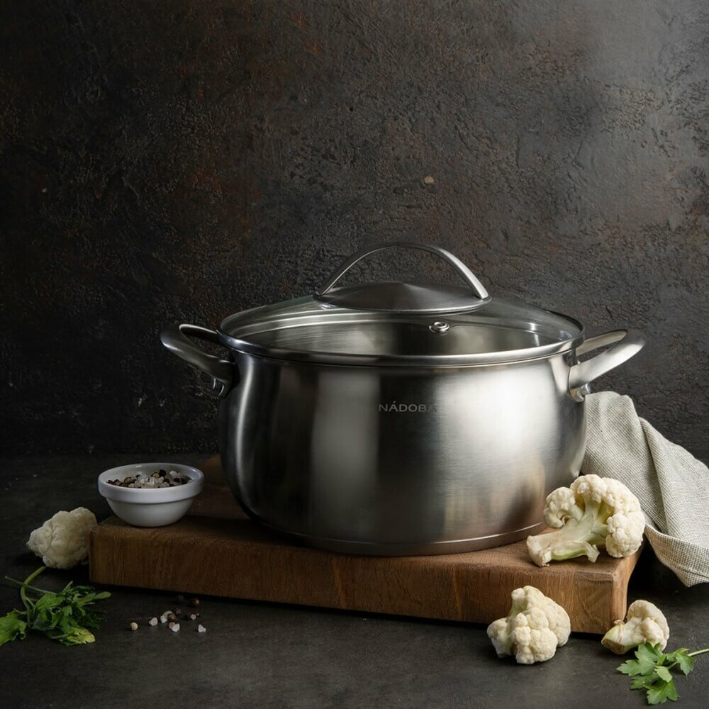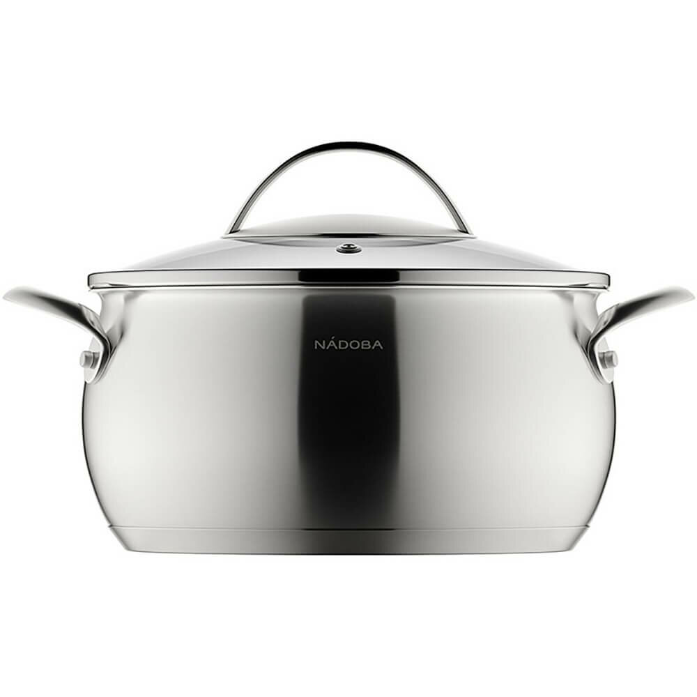 Кастрюля со стеклянной крышкой включает в себя следующий набор посуды из 2 предметов. маленькая кастрюля, объем – 2,1 л; крышка, диаметр – 18 см. Кастрюля выполнена из высококачественной нержавеющей стали 18/10 без эмалированного покрытия, толщина стенок корпуса кастрюли составляет 0,6 мм, что придает набору посуды особую прочность и устойчивость к воздействию кислот и щелочей. Трехслойное капсульное дно алюминиевой кастрюли «нержавеющая сталь – алюминий – нержавеющая сталь» способствует равномерному распределению тепла по дну посуды и обеспечивает быстрый равномерный нагрев пищи, предотвращая её пригорание. На внутренних стенках кастрюли с толстым дном нанесена маркировка литража для легкого определения необходимого объёма воды и продуктов. Крышка кастрюли из нержавеющей стали выполнена из закаленного стекла, за счет чего она обладает повышенной механической прочностью и термостойкостью. Преимущество использования посуды NADOBA заключается в том, что данная кастрюля с толстым дном подходит для любого типа плиты – для газовой, для индукционной плиты, электрической и других. Кастрюли и крышки можно мыть как вручную, так и в посудомоечной машине. Товары для дома и кухни и кухонные принадлежности можно преподносить в качестве подарков на праздники и торжества, в том числе на новоселья, набор посуды упакован в подарочную коробку с ручкой. Предупреждение: изделия не предназначены для использования в духовке. Гарантия – 10 лет.