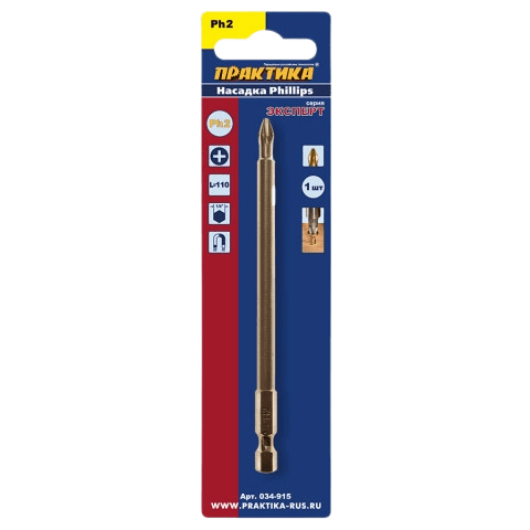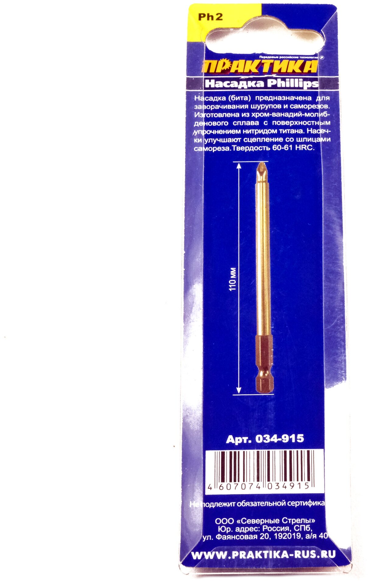 Биты ПРАКТИКА 034-915 ph2 110мм, tin, Эксперт, 1шт.