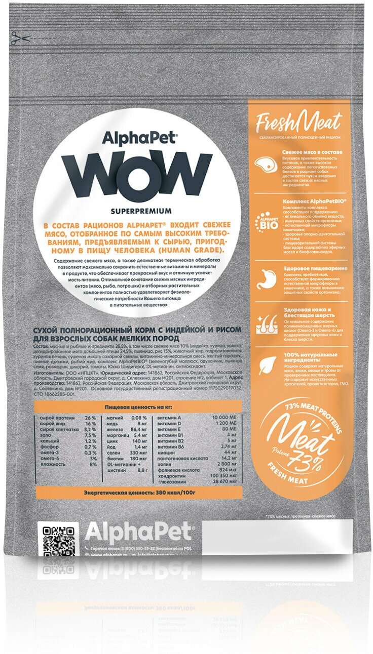 AlphaPet WOW Superpremium сухой корм для взрослых собак мелких пород с чувствительным пищеварением (Ягненок и рис 7 кг.)