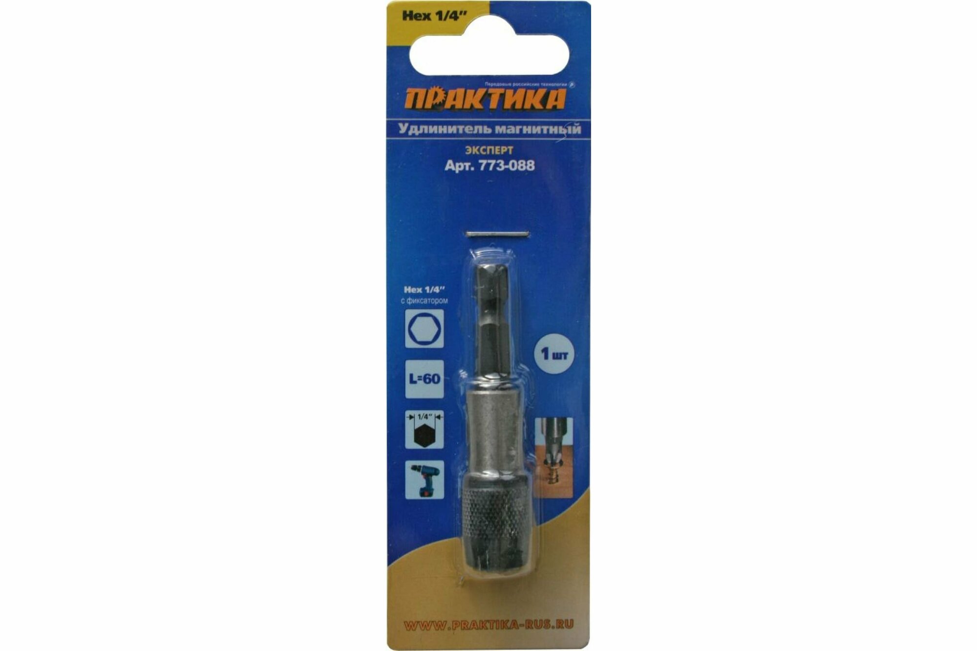 Адаптер для бит ПРАКТИКА 773-088 для бит, с фиксатором 75мм, 1шт.