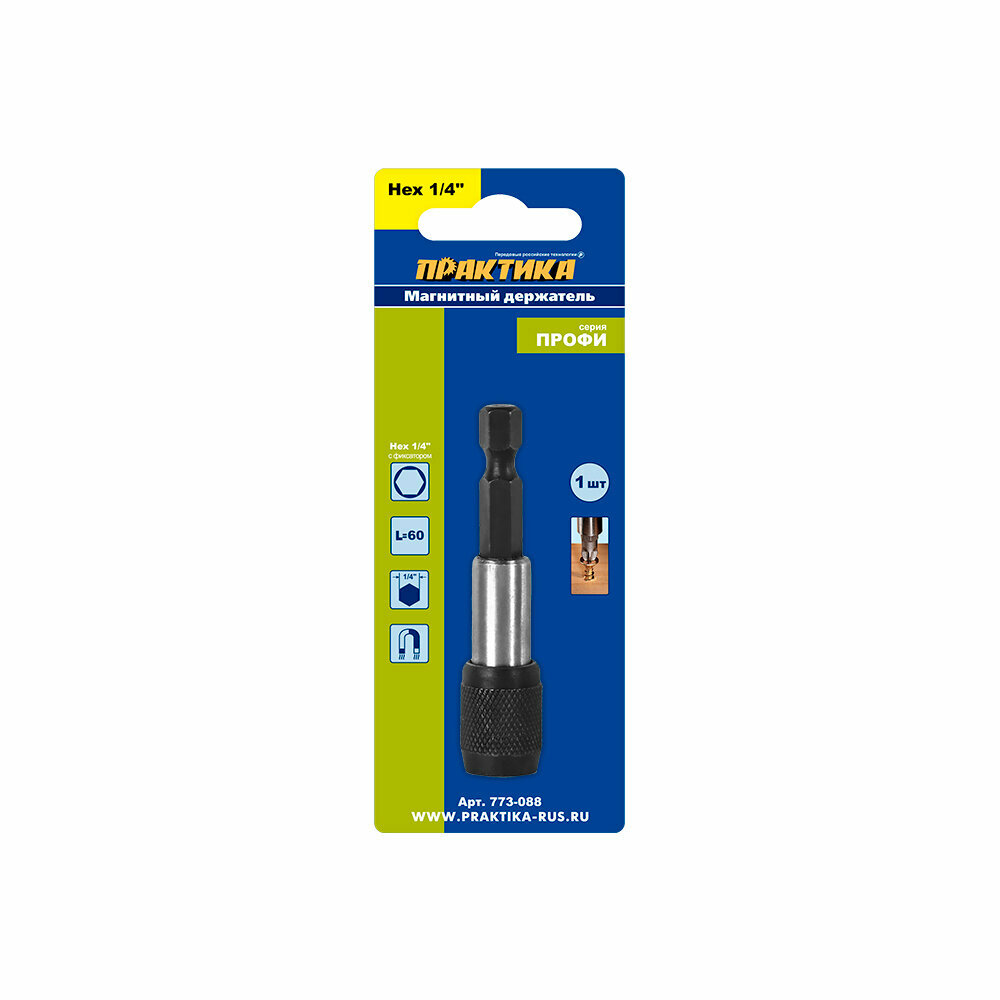 Удлинитель ПРАКТИКА магнитный держатель 60мм для бит 1/4" с фиксатором - незаменимый инструмент для профессионалов и любителей.Удлинитель ПРАКТИКА магнитный держатель 60мм для бит 1/4" с фиксатором отличается повышенной сопротивляемостью на скручивание. Это обеспечивает удобство при различных условиях использования, от завинчивания небольших шурупов в дерево до работы с металлом.Шестигранный наконечник удлинителя обеспечивает надежное крепление бит и предотвращает их выпадение.Магнитный держатель с фиксатором позволяет быстро и легко менять биты, а также обеспечивает их надежную фиксацию во время работы.Удлинитель ПРАКТИКА магнитный держатель 60мм для бит 1/4" с фиксатором поставляется в удобном блистере, который обеспечивает сохранность и защиту инструмента от повреждений.Выбирая удлинитель ПРАКТИКА магнитный держатель 60мм для бит 1/4" с фиксатором, вы получаете надежный и удобный инструмент, который станет незаменимым помощником в вашей работе.