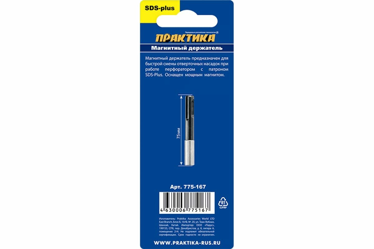 Магнитный адаптер для бит ПРАКТИКА 775-167 sds+ -> бита, 75мм