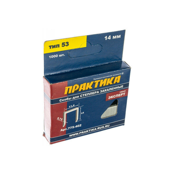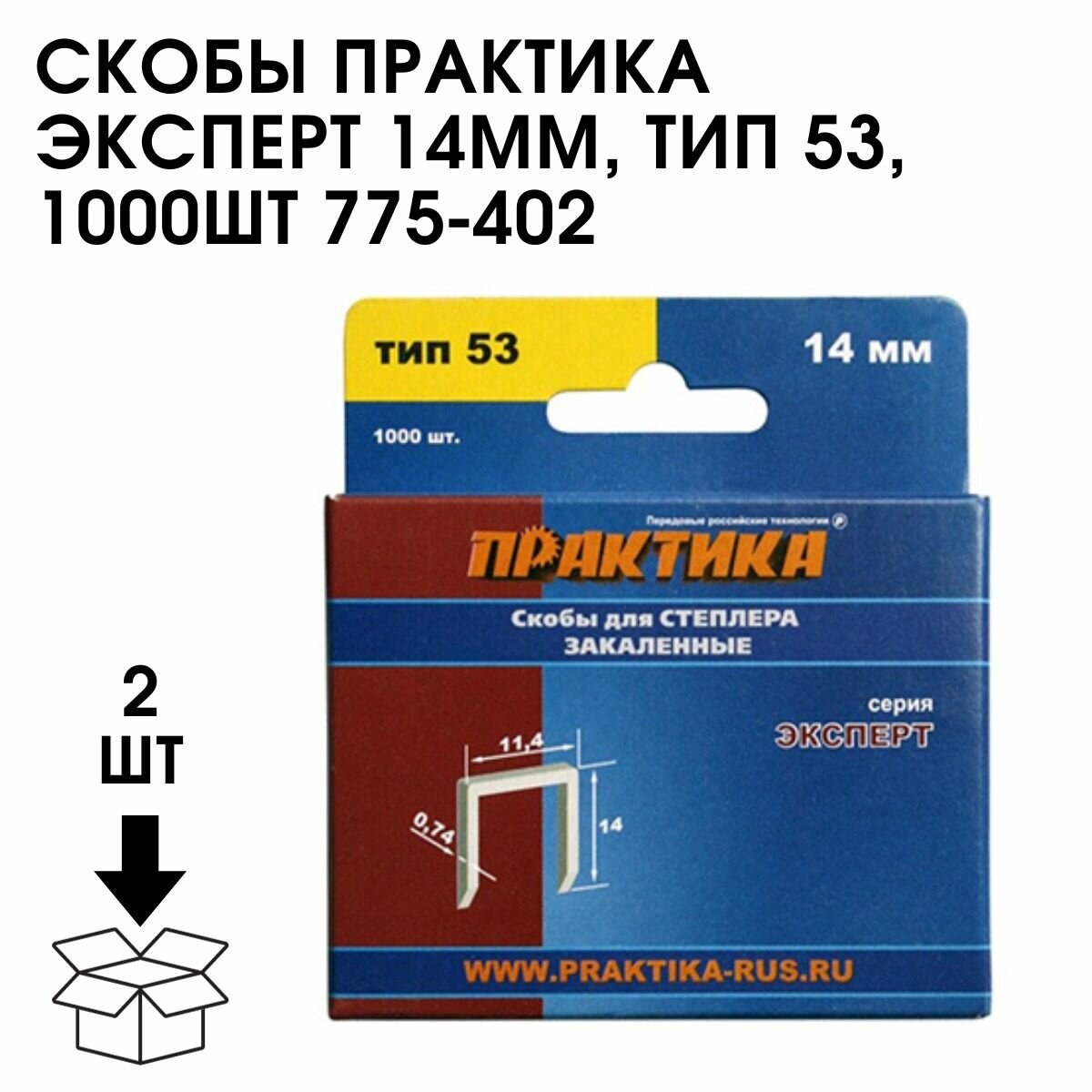 Скобы для степлера ПРАКТИКА 775-402 14мм, тип 53, 1000шт.