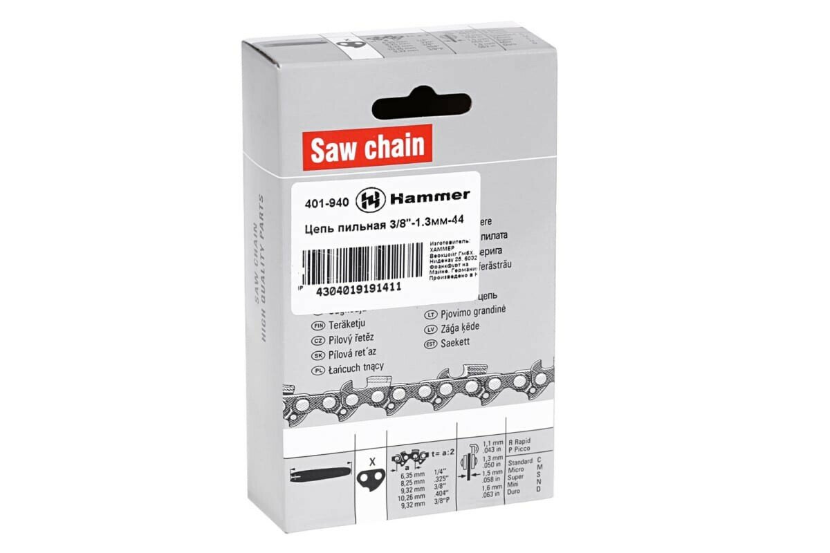 | Название на английском | Chain saw Hammer Flex 401-940 3/8''-1.3мм-44 |