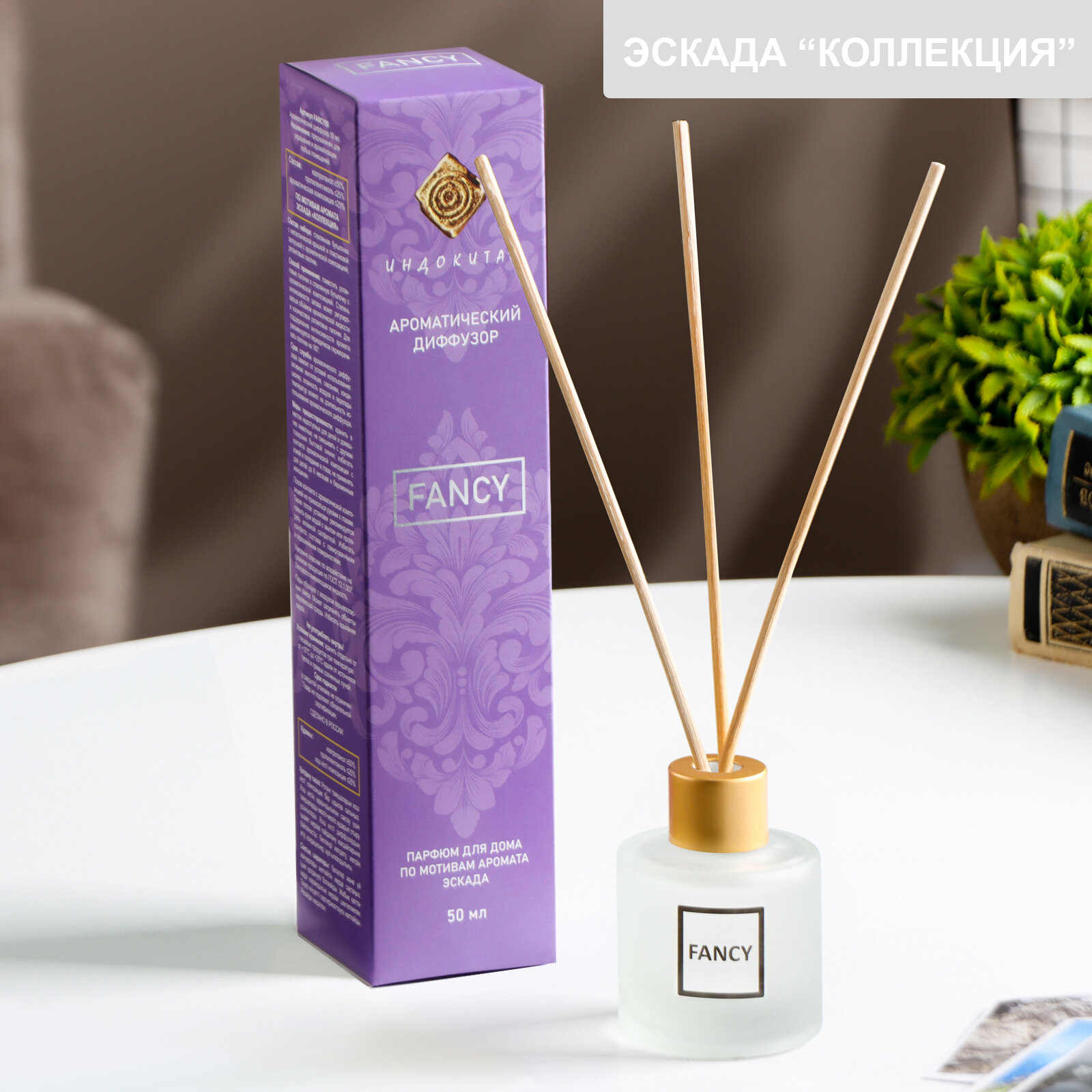 Аромадиффузор с палочками 50мл по мотивам Эскада "Коллекция"-аромат кассический-аромат для гурманов. В этом насыщенном, деликатном аромате сочетаются ноты сливы, карамели, Цветов апельсина, жасмина, розы, сандала, белого кедра и муксусавнимание! Регулировать интенсивность аромата можно с помощью количества палочек в жидкости-чем меньше вставили палочек, тем менее интенсивней аромат и наоборотвнимание! В начале может показаться запах спирта, но по мере пропитки палочек-появляется аромат. Палочки сделаны из березы, пропитываются постепенно, но даже , когда жидкость закончилась-они продолжают пахнуть.
