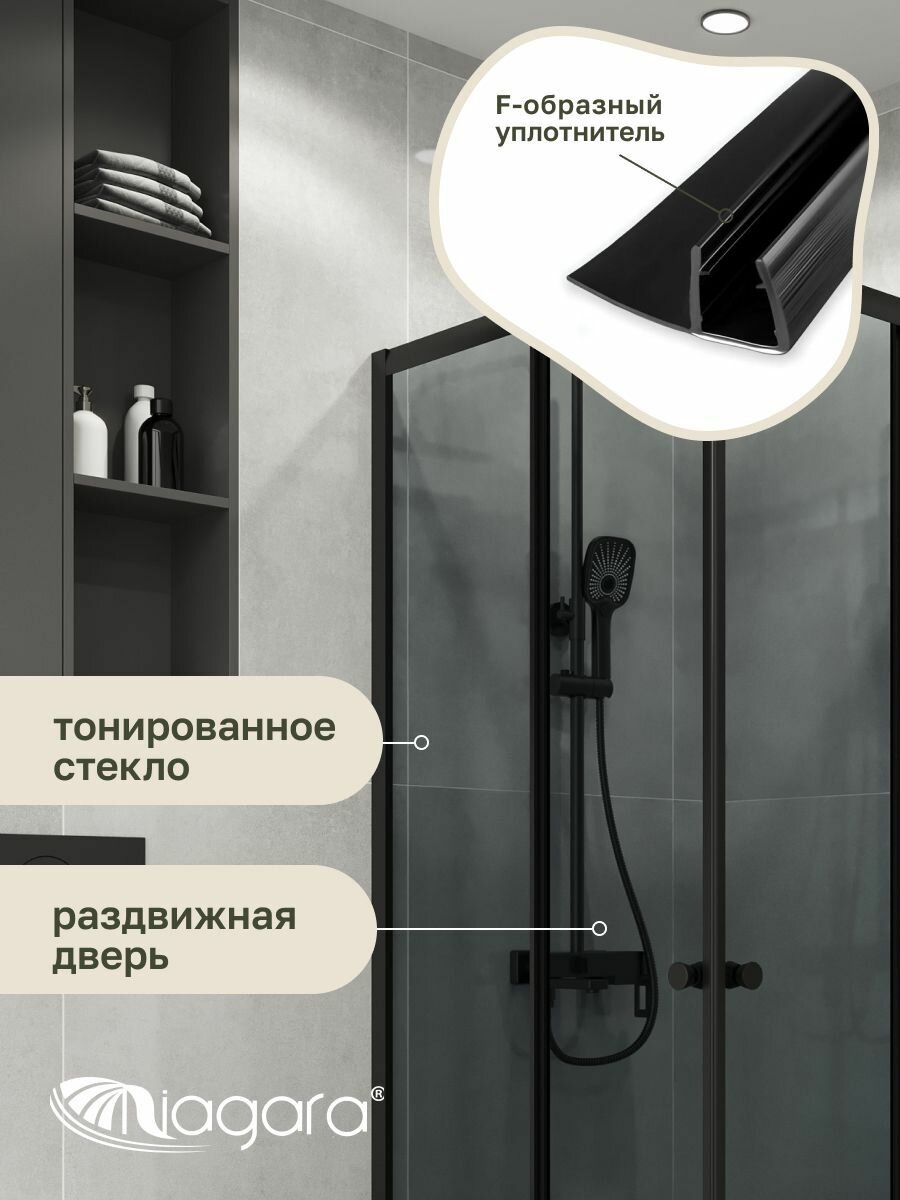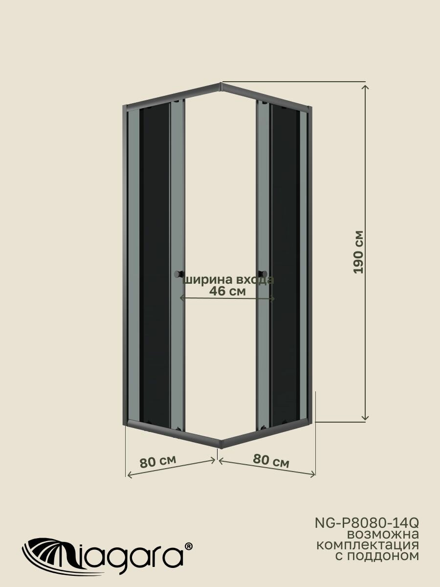 Душевой уголок Niagara Eco 80x80 NG-1008-14QT стекло тонированное, профиль черный матовый