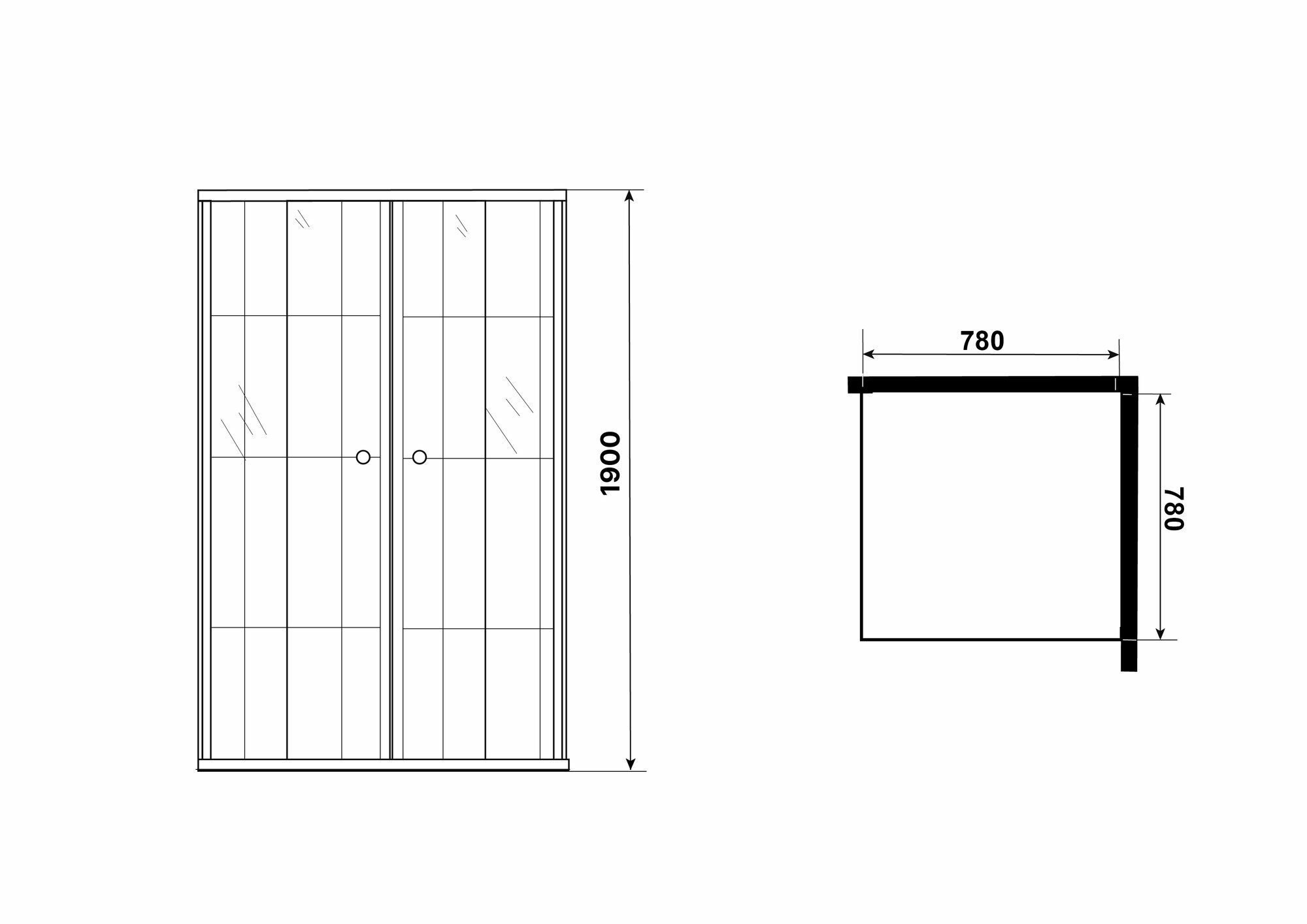 Модель: Eco 80x80 NG-1008-14QKL стекло прозрачное, профиль черный матовый