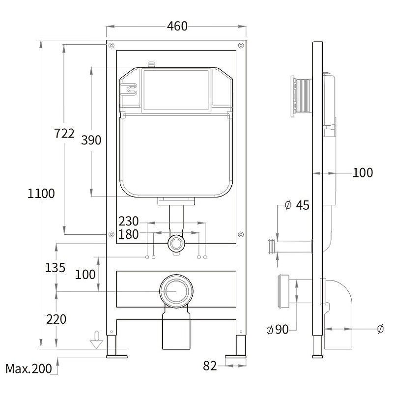 - Размеры инсталляции (ШхВхГ): 460х1100х100 мм.