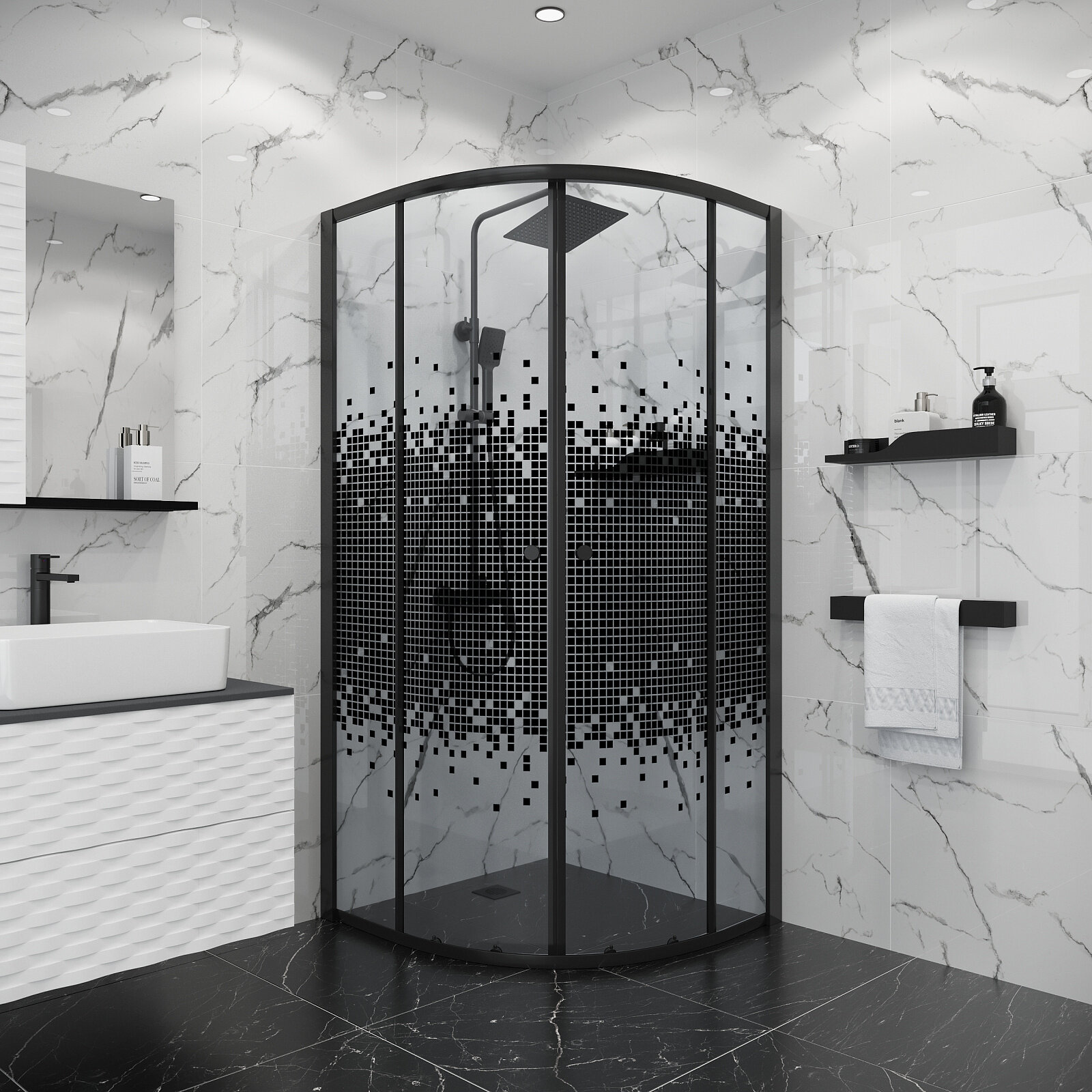 Душевой уголок Niagara Eco 80x80 NG-1003-14BLACK стекло мозаика, профиль черный матовый