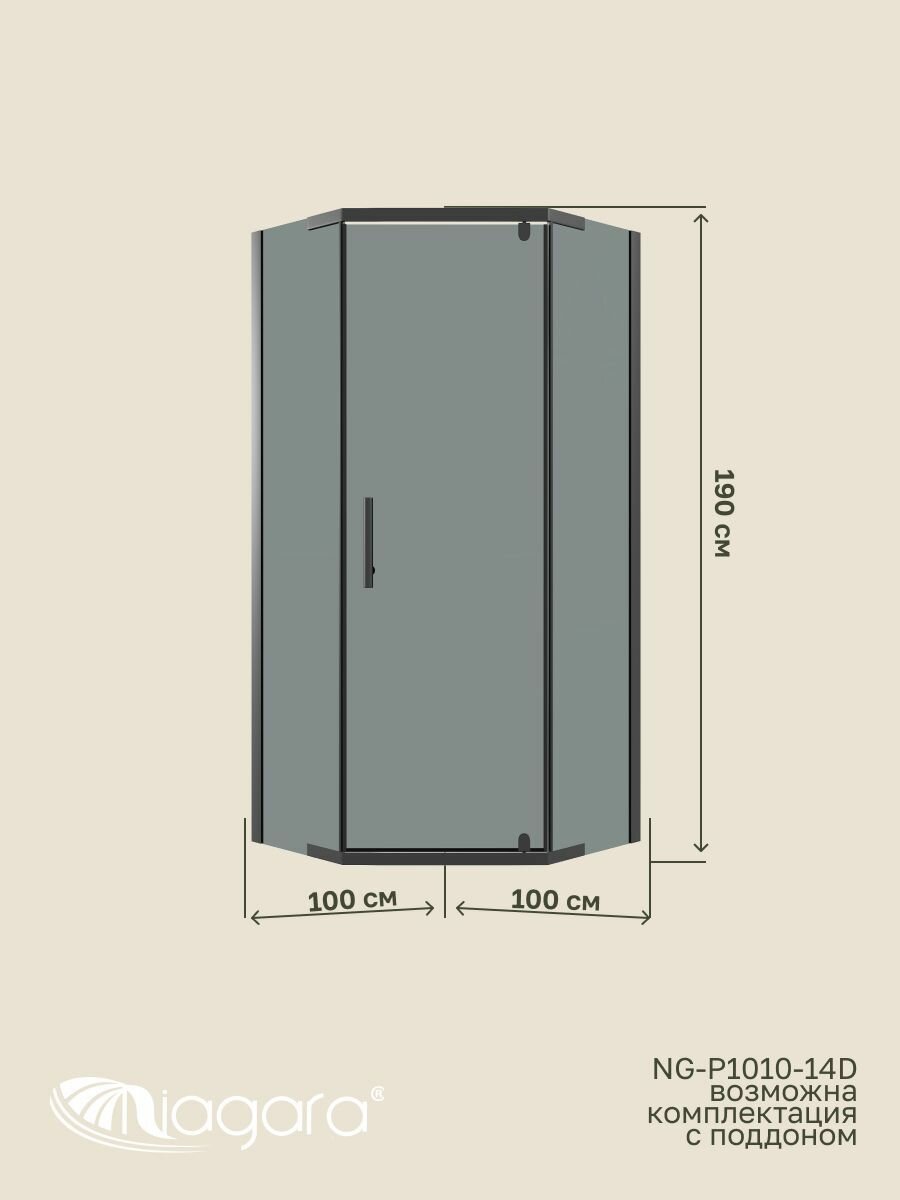Душевой уголок Niagara пятиугольной формой размером 98 см на 98 см высотой 190 см создаст значительное пространство внутри, для вашего комфорта. Цвет профиля Niagara - черный, это несравненный вариант для современного интерьера. Стекло у душевого уголка Niagara NG-1010-14DT представлено в идеальном исполнении, толщиной 4 мм, отлично будет гармонировать с любым дизайном интерьера ванной. Универсальность ориентации Niagara позволяет не задумываться о, том в какой именно угол нужно устанавливать, и даже при изменении положения других элементов сантехники, можно без проблем изменить ориентацию. Niagara NG-1010-14DT спроектирован дизайнерам с четким соблюдением всех основных элементов современного стиля.