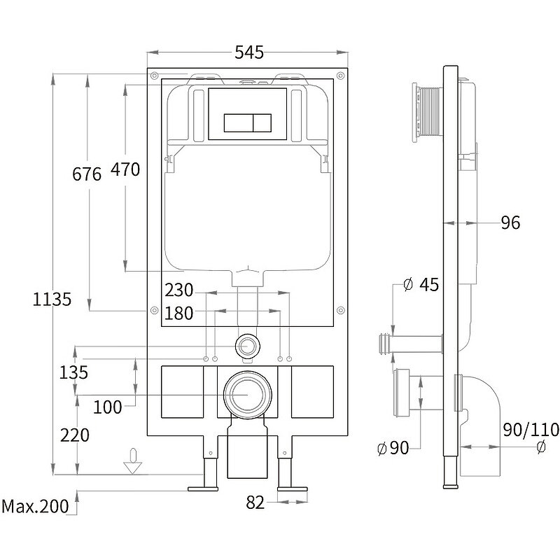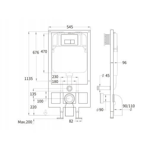 - Размеры инсталляции (ШхВхГ): 545х1135х96 мм.