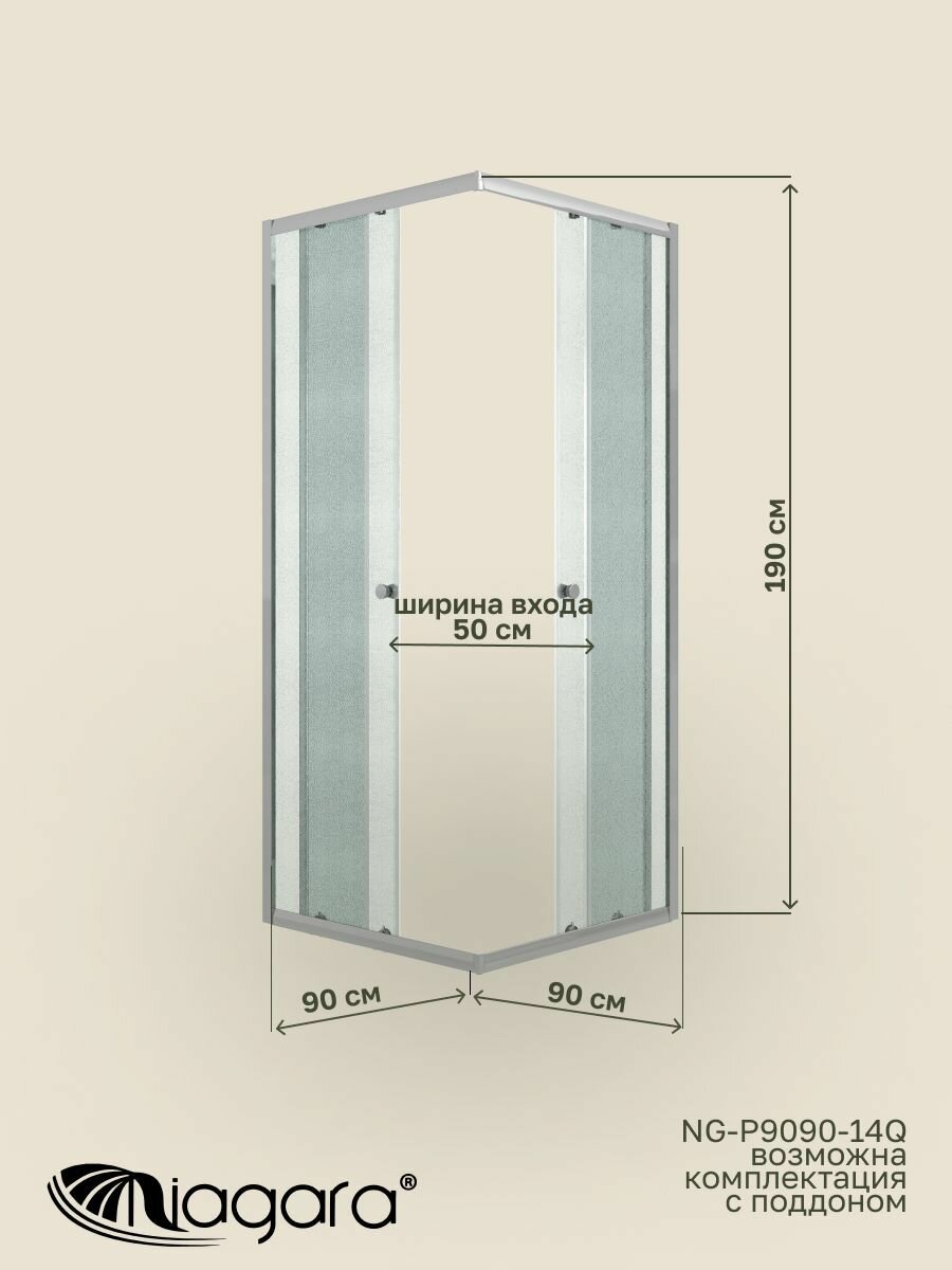 Модель: Eco 90x90 NG-1009-14QMT стекло матовое, профиль хром матовый