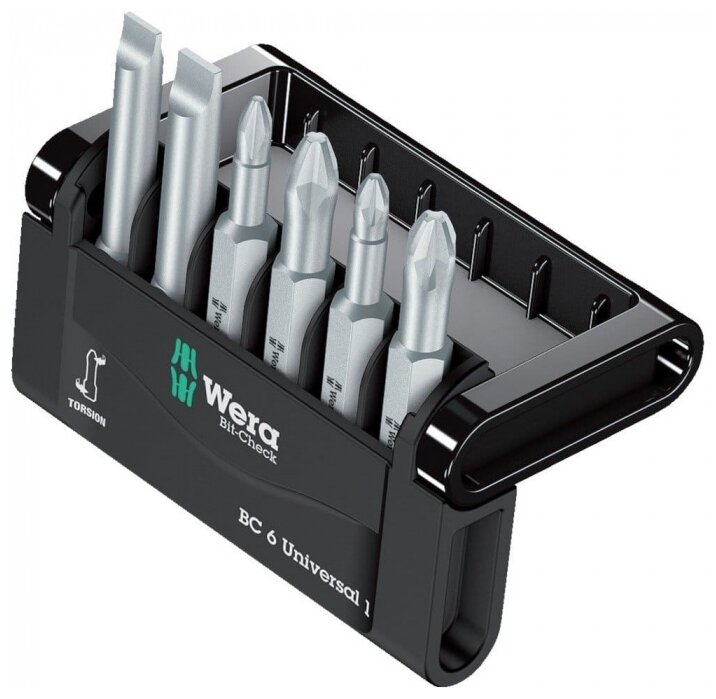6 битов Wera удобно и компактно размещены в практичном наборе Bit-Check. Закалённые до вязкой твёрдости биты Wera под внутренний шестигранник, для универсального применения. 1 универсальный держатель 893/4/1 K для установки в шуруповерт или патрон электродрели.