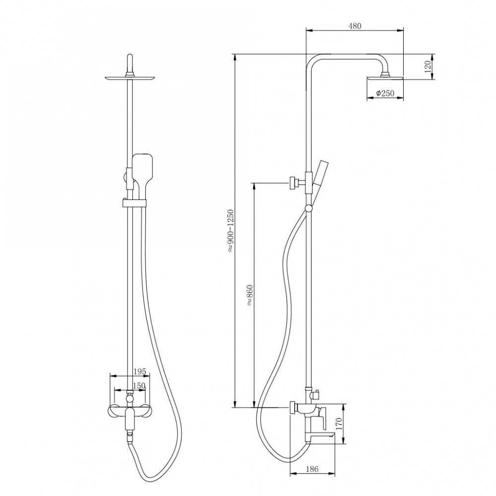 - Регулируемая по высоте телескопическая штанга: 900-1250 мм.