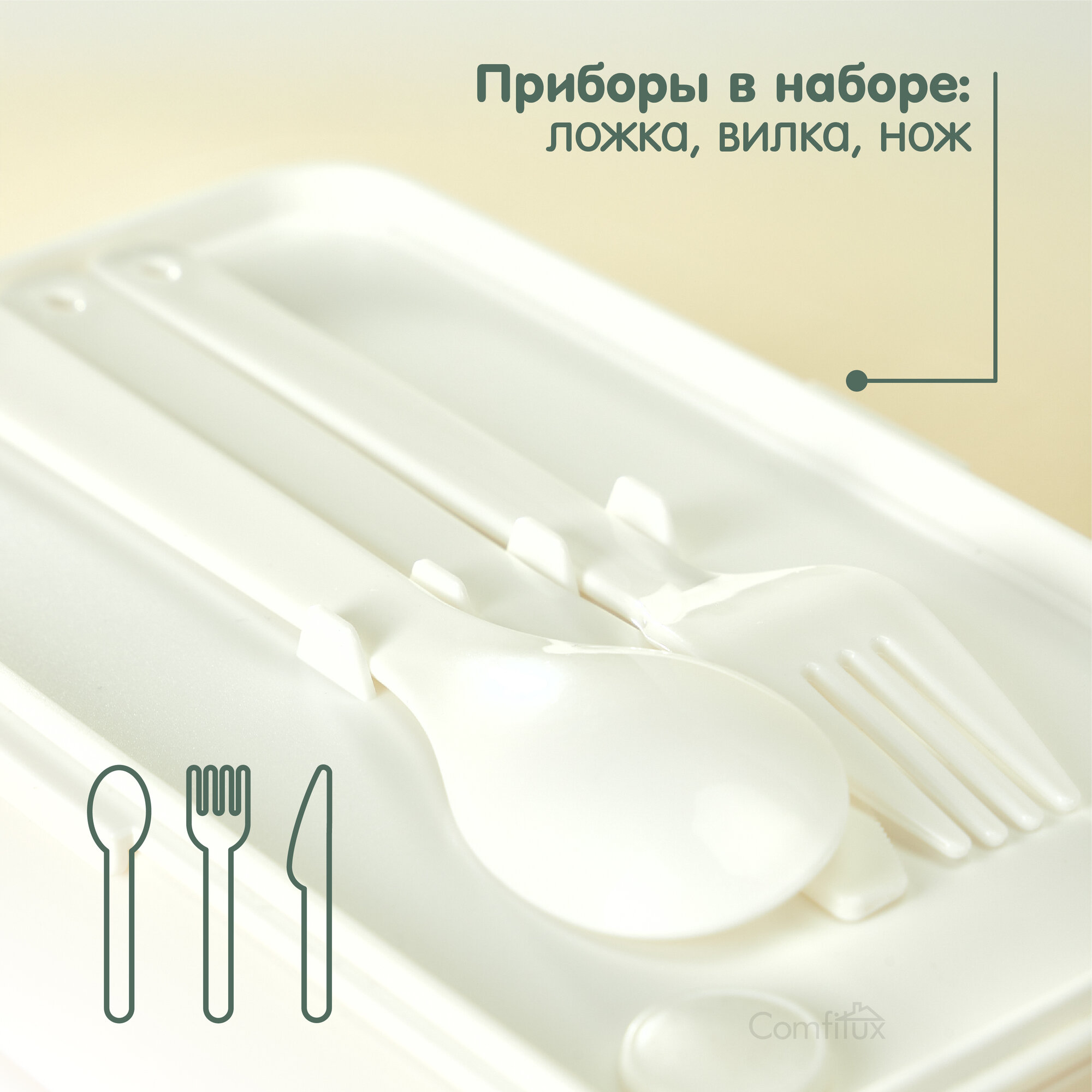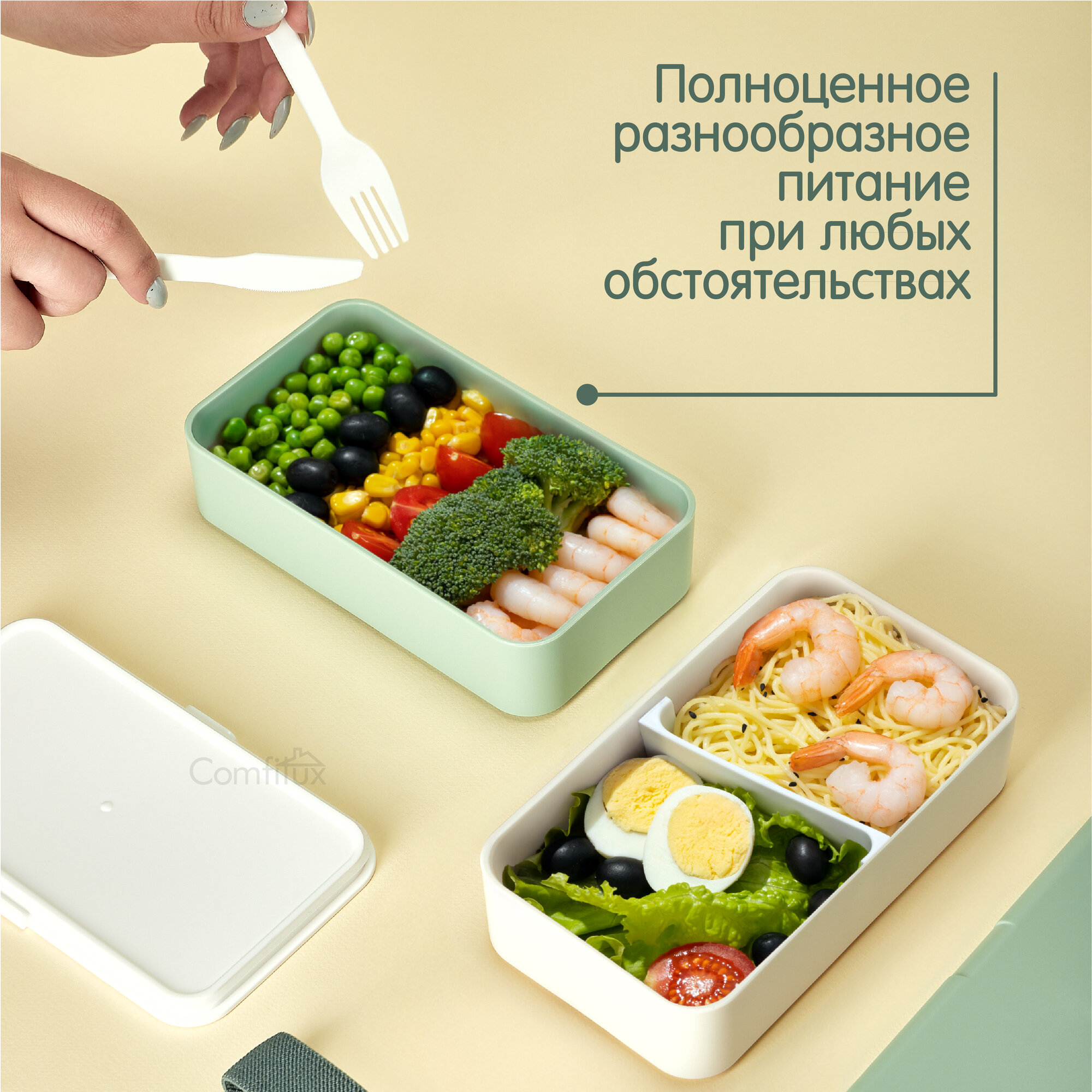 | Комплектация | Контейнер 600 мл - 2 шт., Вилка пластиковая - 1 шт., Ложка пластиковая - 1 шт., Нож пластиковый - 1 шт., Резинка - 1 шт. |