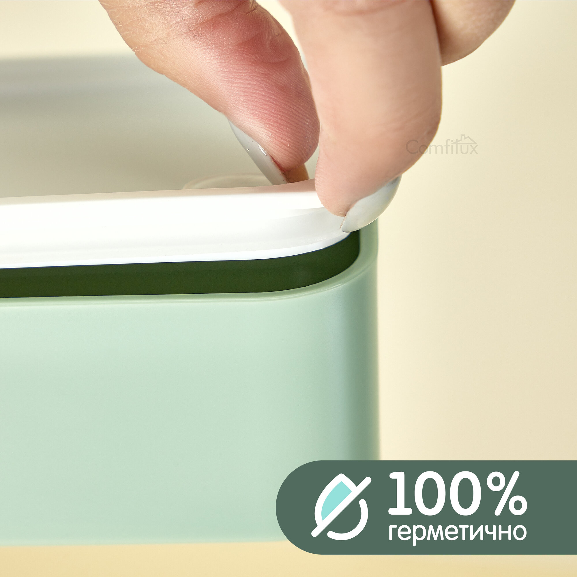 Удобная резинка сверху обеспечивает надежное закрытие контейнера, предотвращая протечки.