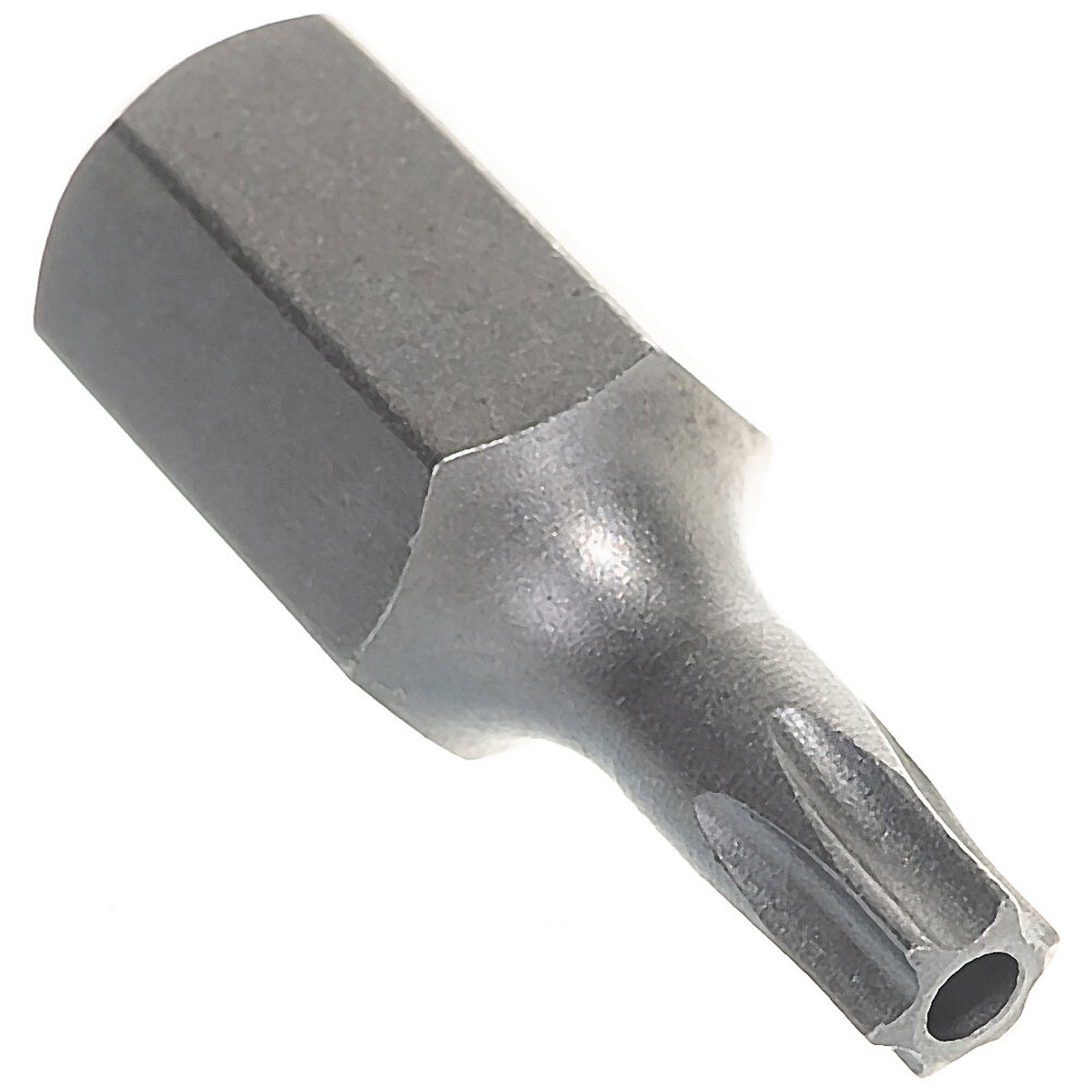 Бита TORX T27H с отверстием внутри (штырьком) изготовлена из стали S2 (Cr-Ni-Mo). Бита торкс Т27 звездочка с отверстием внутри имеет посадку под внутренний шестигранный привод (HEX) размером 10мм. Длина бита 30мм. Короткая силовая ударная бита для ручного и механизированного инструмента. Например, может использоваться для ударной отвертки с держателем бита на 10мм.Легированная хромомолибденовая сталь S2 (Cr-Ni-Mo) имеет повышенную прочность. Добавление молибдена увеличивает растяжимость стали при высоких температурах и предотвращает деформацию при нагрузках, увеличивая устойчивость к воздействию коррозионных факторов.Материалы и технологический процесс изготовления:- сталь: хромомолибденовая S2 (Cr-Ni-Mo)- обработка: полирование- покрытие: дробеструйная обработка- твердость: 58-62 HRCКонфигурация:- профиль: TORX HOLE (звезда 6-ть лучей с отверстием внутри)- размер: T27H (Т27 с отверстием внутри)- под шестигран. привод: 10мм- длина: 30мм