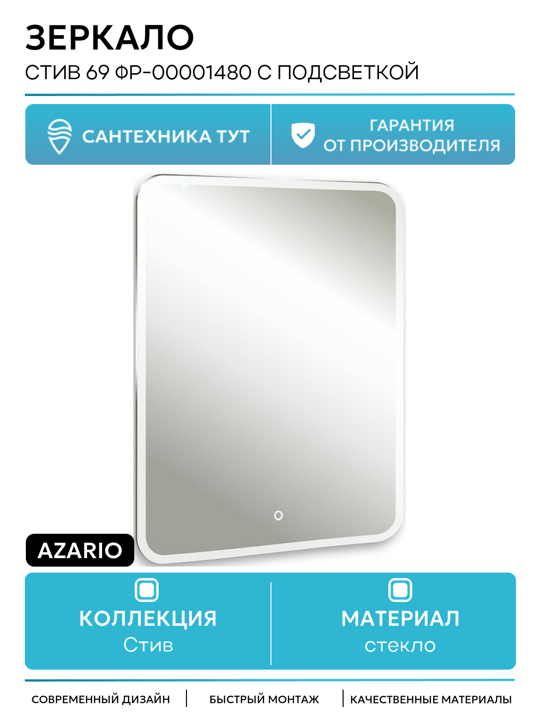 Зеркало Azario Стив 92x69 LED - стильное и функциональное решение для вашего интерьера.Зеркало выполнено в современном дизайне с использованием структурного рисунка, который наносится на амальгаму. Это позволяет сохранить лицевую часть изделия нетронутой, придавая ему уникальный и привлекательный вид.Особенностью зеркала является LED-подсветка и сенсорный выключатель. Подсветка включается и выключается коротким касанием светящейся области, а длительное касание позволяет регулировать яркость свечения. Это обеспечивает комфортное использование зеркала в любое время суток и при любом освещении.Материал рамы зеркала - сенсорное стекло, что делает его безопасным и простым в уходе.Зеркало Azario Стив 92x69 LED станет отличным дополнением к интерьеру вашей ванной комнаты, гостиной или спальни, обеспечивая комфорт и эстетическое удовольствие от использования.