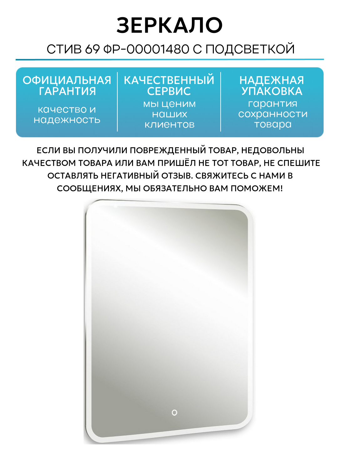 | Оснащение зеркала | С выключателем, с подсветкой |