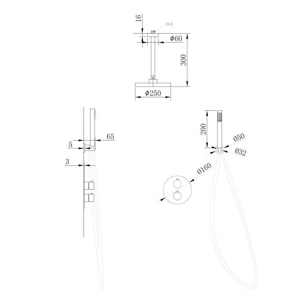 | Состав комплекта | верхний душ, смеситель, шланговое подключение, душевой гарнитур |