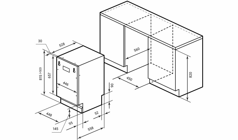 | Размер для встраивания (ВхШхГ) | 820х450х560 |