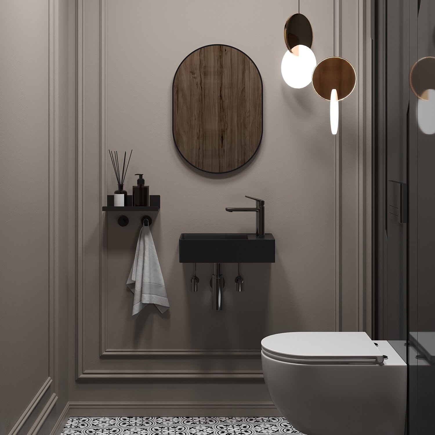 Маленькая раковина в туалет Wellsee WC Area черная матовая 1. 1 x раковина (цвет матовый черный); 1 x комплект креплений для монтажа; 1 x инструкция по монтажу и эксплуатации; 1 x гарантийный талонСмотри также характеристики.