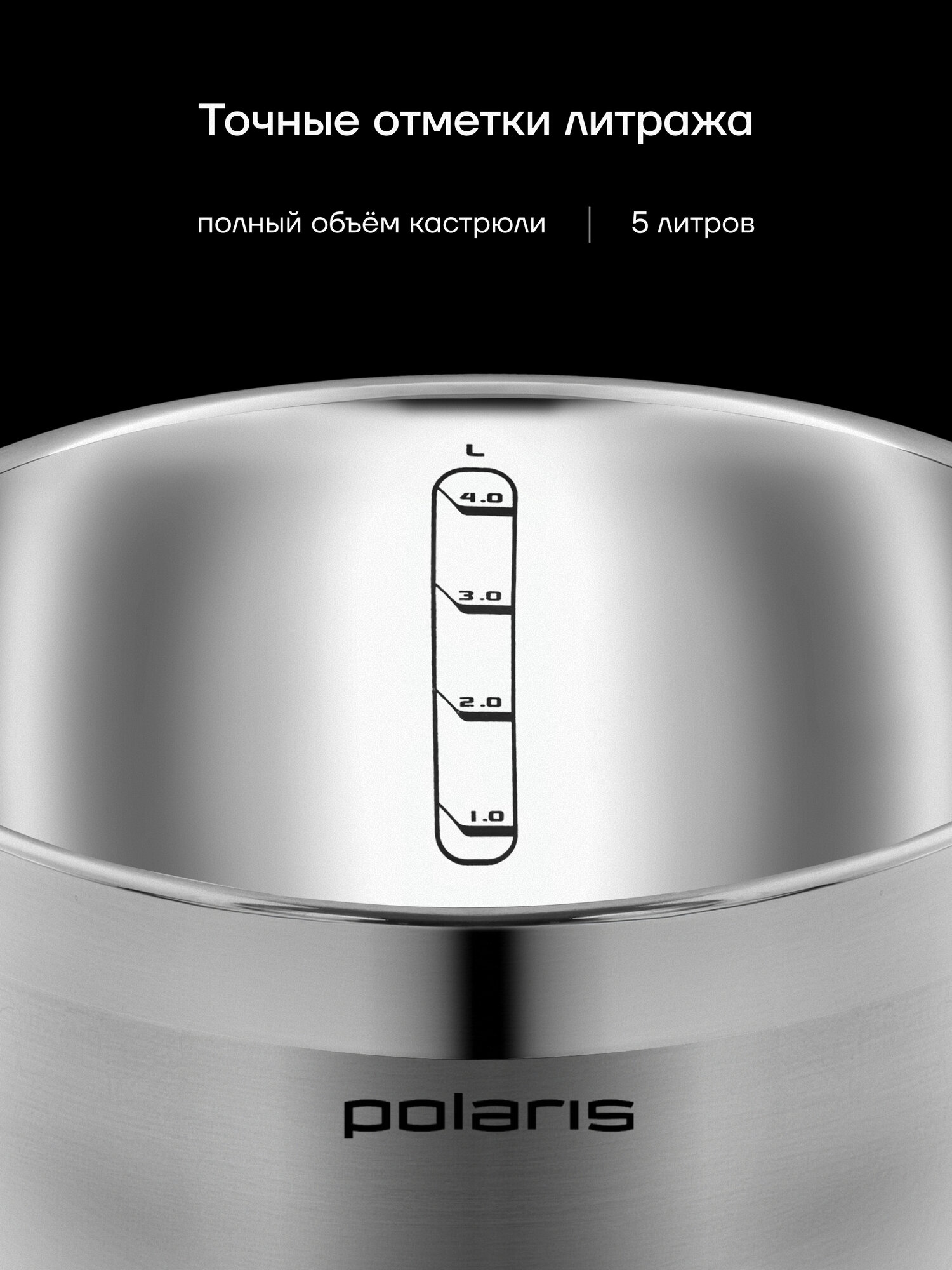 Polaris Mela-22C - кастрюля 22 см с крышкой, объем 5 л, диаметр дна 19,5 см.