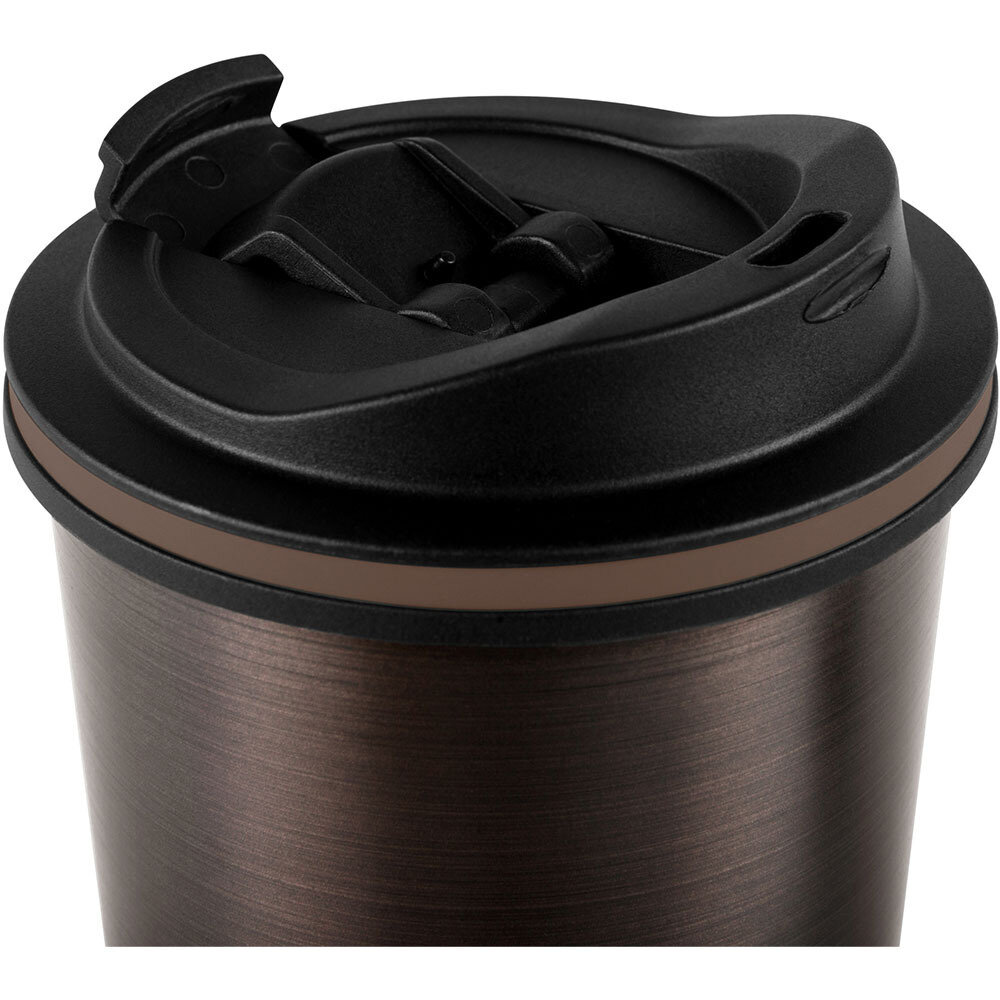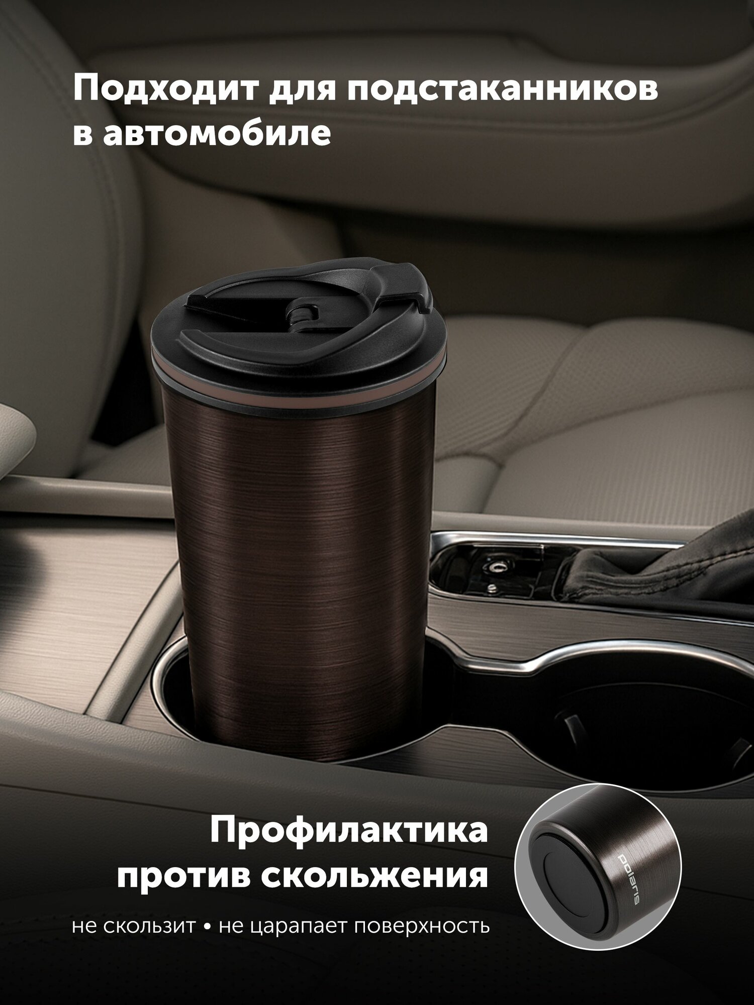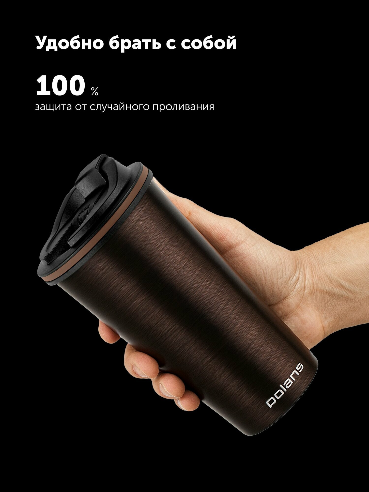 Герметичная крышка снабжена кнопкой открывания для удобного доступа к напитку, предотвращая проливание.