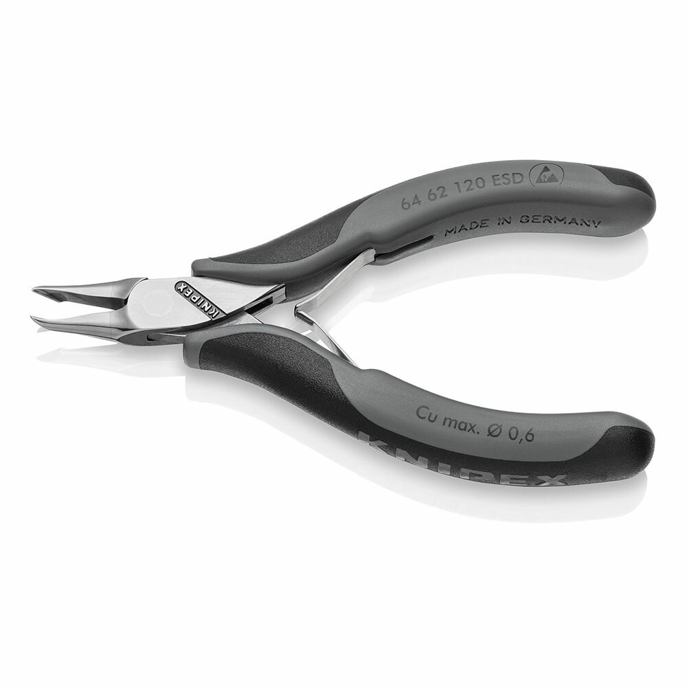 Кусачки торцевые для электроники маленькая фаска узкие губки 65° 120 мм 2-комп ручки Knipex (KN-6462120)