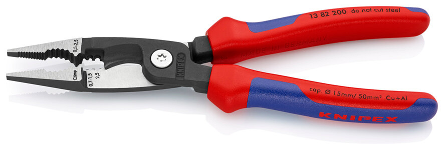 Клещи электромонтажные 6-в-1 зачистка 0.75 – 1.5 / 2.5 мм² рез Ø 15 мм / 50 мм² 200 мм фосфатир Knipex (KN-1382200SB)