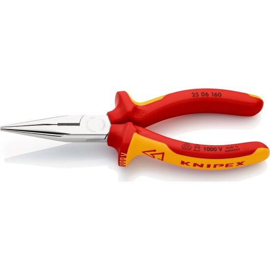 Длинногубцы с режущими кромками VDE 160 мм хром 2-комп ручки SB Knipex (KN-2506160SB)