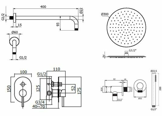 | Габариты верхнего душа | 300 |