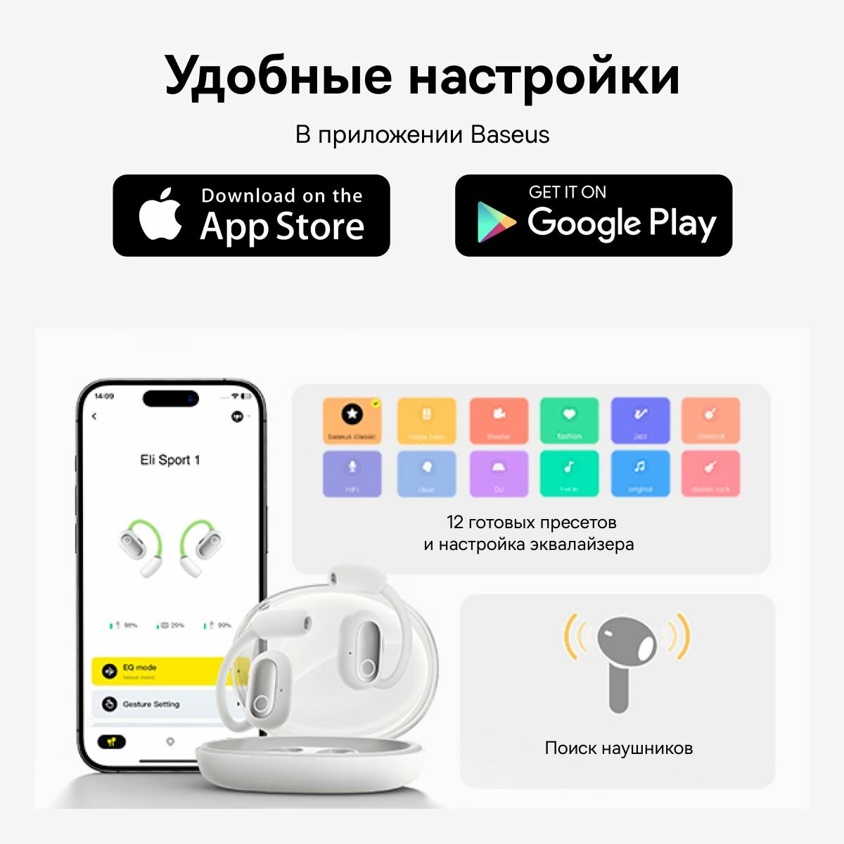 Наушники беспроводные BASEUS Eli Sport 1 представляют собой высококачественные спортивные наушники, обеспечивающие превосходное качество звука и комфорт во время тренировок.Открытое акустическое оформление позволяет всегда оставаться в курсе происходящего вокруг, в то время как технология усиления низких частот улучшает передачу звука во всех частотных диапазонах.Длительное время работы: наушники воспроизводят звук до 7,5 часов на одном заряде и до 30 часов с использованием кейса. 10-минутная подзарядка обеспечивает до 2 часов воспроизведения.Прочное крепление: ушные крючки из титанового сплава с эффектом памяти адаптируются к различным формам ушей, обеспечивая надежное закрепление наушников для интенсивной тренировки.Беспроводные наушники Baseus оснащены Bluetooth 5.3, поддерживают кодеки AAC и SBC, имеют версию Ростест (EAC).Наушники беспроводные BASEUS Eli Sport 1 имеют черный цвет, оснащены регулятором громкости и сенсорным управлением.Наушники поставляются в комплекте с одним наушником и зарядным кейсом.Наушники беспроводные BASEUS Eli Sport 1 - это надежный и удобный выбор для любителей спорта и активного образа жизни.