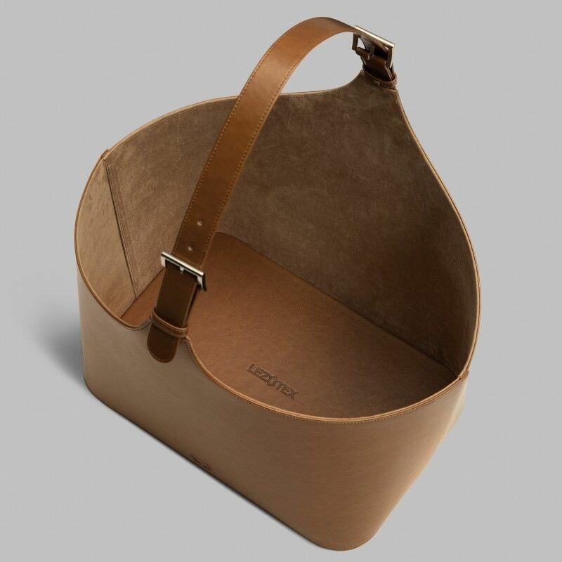 Корзина для хранения «Людвин» изготовлена из высокотехнологичного материала LEZOTEX®. Это современный экополимер с микропористой структурой, влагопроницаемый и дышащий, подобно натуральной коже.Он тактильно, своей структурой и свойствами напоминает кожу, при этом его изготовление не наносит вреда окружающей среде. Этот экологичный материал тактильно приятен и мягок. Для его финишного покрытия был разработан лак на основе натуральных смол, дополненных специальными антибактериальными компонентами.Стильная корзина напоминает дорогую кожаную сумку с элегантной ручкой, длину ручки можно регулировать. Эффектный оттенок лесного ореха – один из актуальных трендов. Этот теплый, слегка золотистый коричневый – цвет осени и осеннего леса. «Людвин» достаточно вместительна: в нее можно положить плед, необходимые аксессуары или книги, одежду и домашнюю обувь.