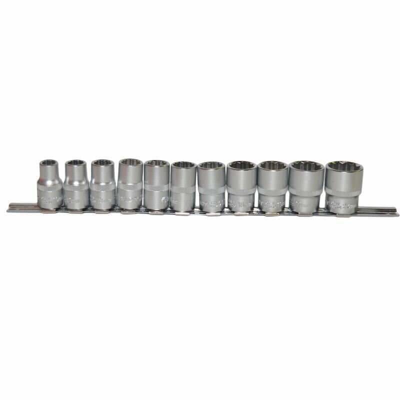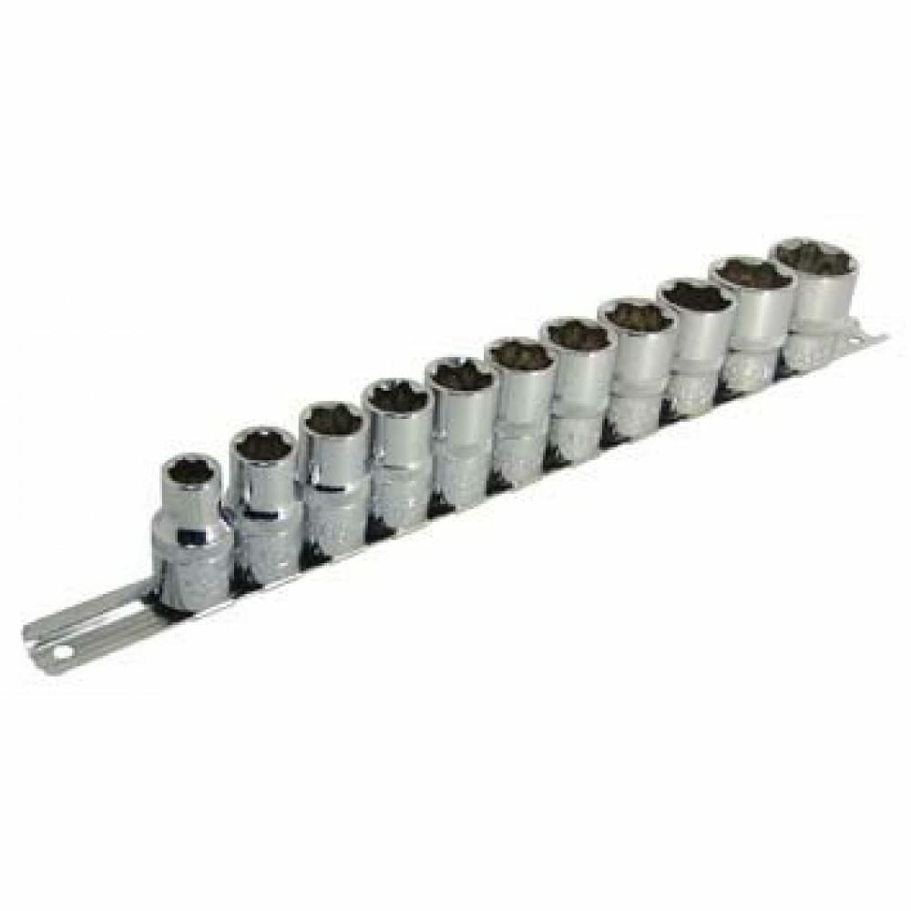Набор сменных торцевых головок 1/2" дюйма 12-гранных 10-24 мм 11 предметов на металлической планке используется для взаимодействия с резьбовыми соединениями двенадцатигранного многогранного профиля. Набор двенадцатигранных головок 1/2" включает ряд головок размером от 10 мм до 24 мм. Для использования набора больших сменных головок 1/2" потребуется наличие воротка или трещотки с присоединительным квадратом 1/2" дюйма. Набор головок 12-ть граней под большую трещетку или вороток.Материалы и технологический процесс изготовления:- сталь: хромованадиевая Cr-V 50BV30;- обработка: полирование, закалка ТВЧ;- покрытие: трехслойное хромоникелевое сатиновое;- твердость: 42-46 HRC.Конфигурация:- 12-гр. динамический профиль;- посадочный квадрат 1/2" (12.7мм) с динамическим профилем;- накатка по окружности.Комплектация:1/2" Головка 12-гр: 10, 12, 13, 14, 15, 16, 17, 18, 19, 22, 24 мм - 11 шт.Прочее:- на металлической планке держателе (рельсе).