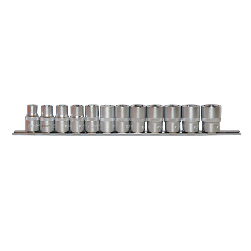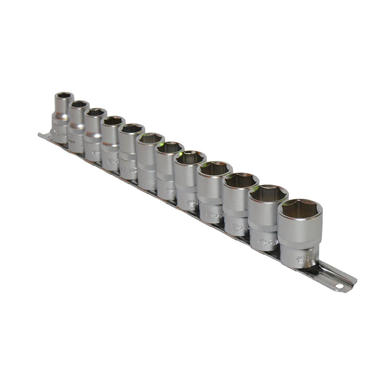 Набор сменных торцевых головок 1/2" дюйма 6-гранных 10-22 мм 12 предметов на металлической планке используется для взаимодействия с резьбовыми соединениями шестигранного профиля. Набор шестигранных головок 1/2" включает ряд головок размером от 10 мм до 22 мм. Для использования набора больших сменных головок 1/2" потребуется наличие воротка или трещотки с присоединительным квадратом 1/2" дюйма. Набор головок под большую трещетку или вороток.Материалы и технологический процесс изготовления:- сталь: хромованадиевая Cr-V 50BV30;- обработка: полирование, закалка ТВЧ;- покрытие: трехслойное хромоникелевое сатиновое;- твердость: 42-46 HRC.Конфигурация:- 6-гр. динамический профиль;- посадочный квадрат 1/2" (12.7мм) с динамическим профилем;- накатка по окружности.Комплектация:1/2" Головка 6-гр: 10, 11, 12, 13, 14, 15, 16, 17, 18, 19, 21, 22 мм - 12 шт.Прочее:- на металлической планке держателе (рельсе).