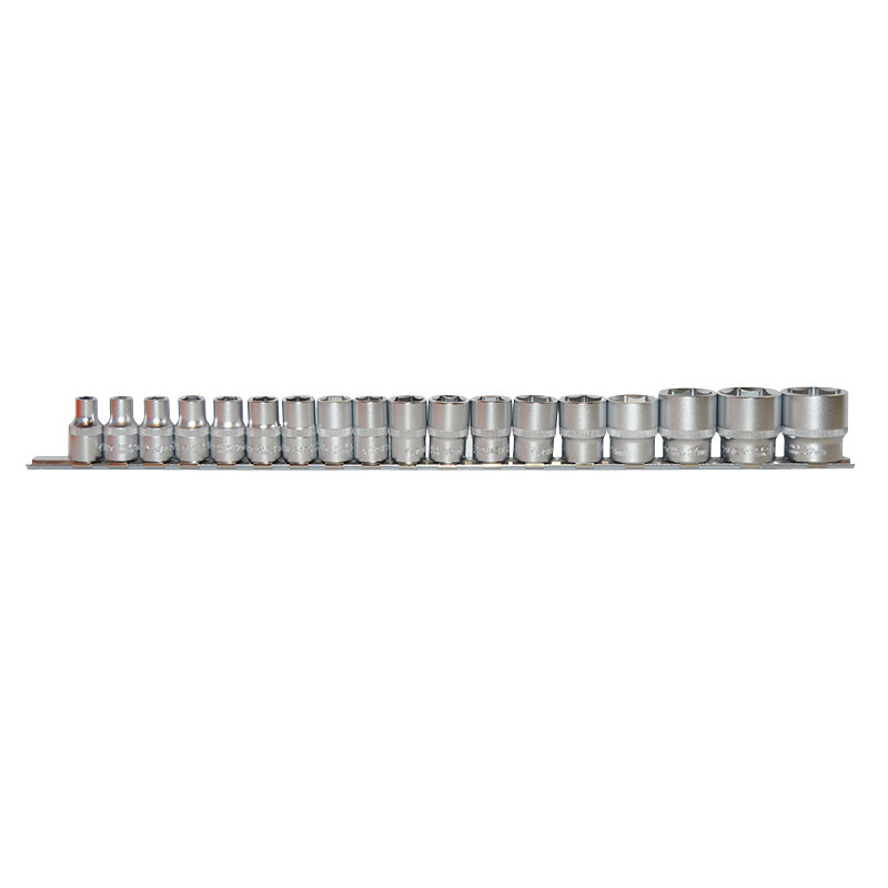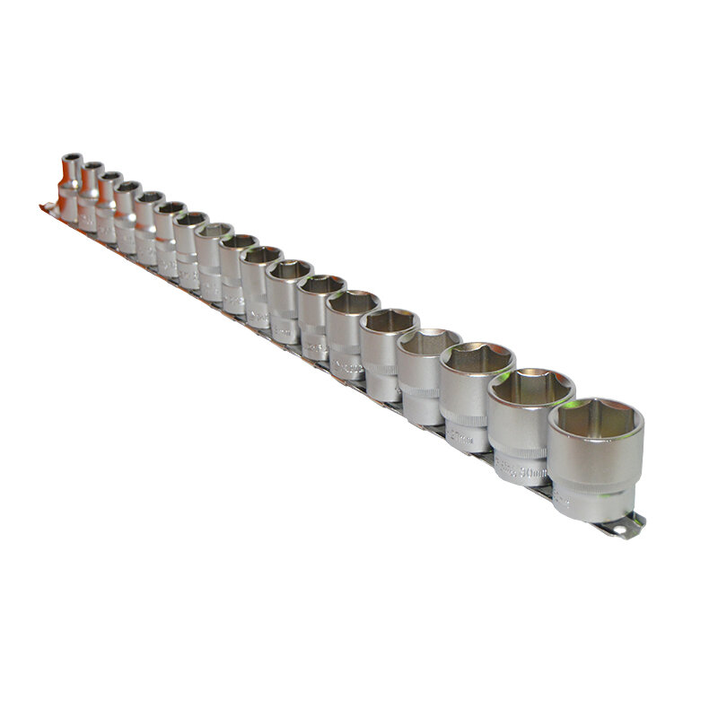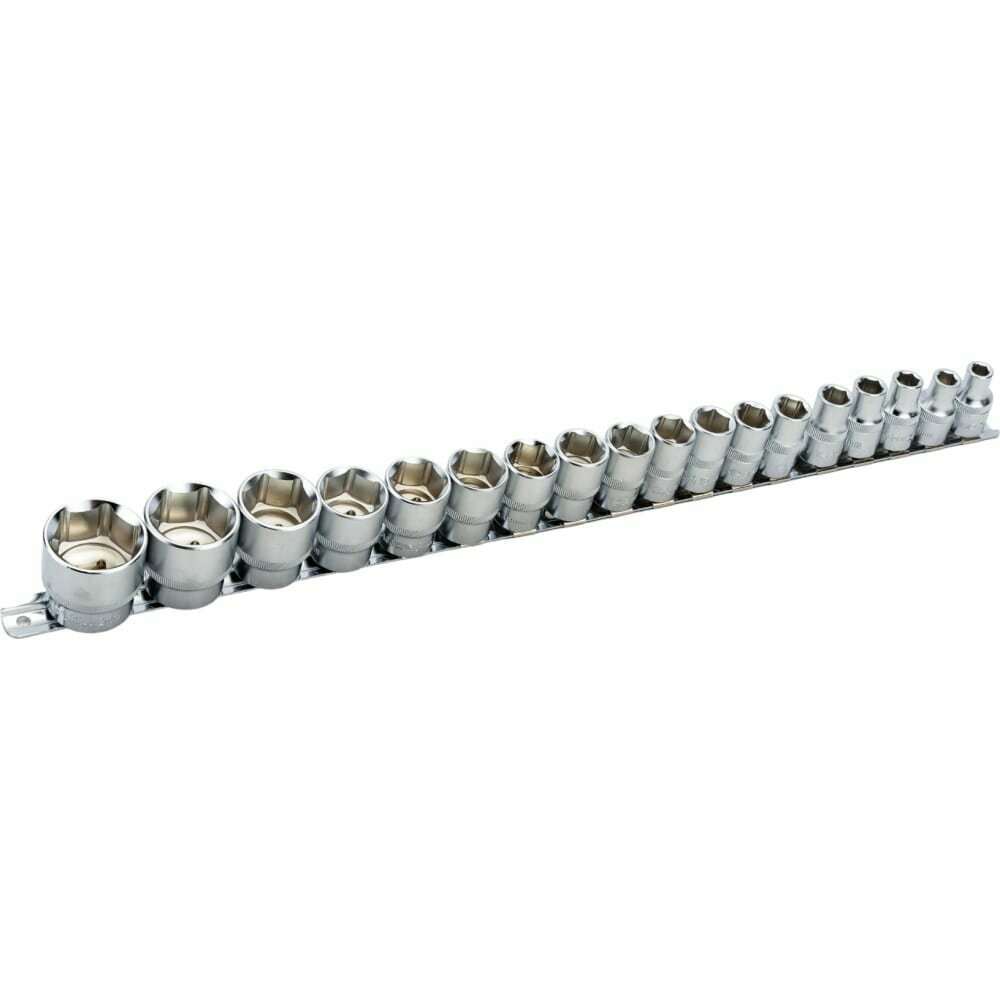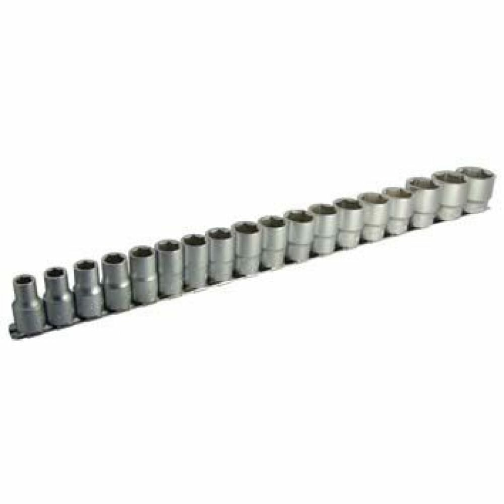 Набор сменных торцевых головок 1/2" дюйма 6-гранных 8-32 мм 18 предметов на металлической планке используется для взаимодействия с резьбовыми соединениями шестигранного профиля. Набор шестигранных головок 1/2" включает ряд головок размером от 8 мм до 32 мм. Для использования набора больших сменных головок 1/2" потребуется наличие воротка или трещотки с присоединительным квадратом 1/2" дюйма. Набор головок под большую трещетку или вороток.Материалы и технологический процесс изготовления:- сталь: хромованадиевая Cr-V 50BV30;- обработка: полирование, закалка ТВЧ;- покрытие: трехслойное хромоникелевое сатиновое;- твердость: 42-46 HRC.Конфигурация:- 6-гр. динамический профиль;- посадочный квадрат 1/2" (12.7мм) с динамическим профилем;- накатка по окружности.Комплектация:1/2" Головка 6-гр: 8, 9, 10, 11, 12, 13, 14, 15, 16, 17, 18, 19, 21, 22, 24, 27, 30, 32 мм - 18 шт.Прочее:- на металлической планке держателе (рельсе).