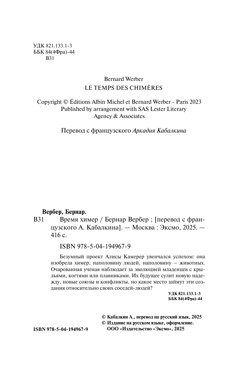 Книга: Время химер (Бернар Вербер); Эксмо, 2025