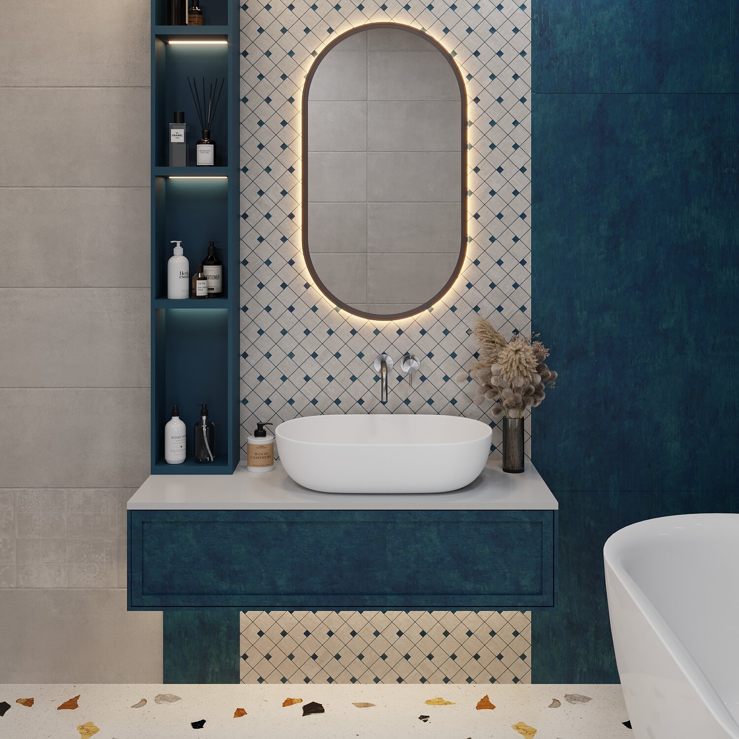 Накладная раковина для ванной комнаты Wellsee Chic Riviera : овальная раковина очень стильная раковина с оптимальными размерами. Накладные раковины отличаются значительной простотой монтажа и множеством дизайнерских вариантов.