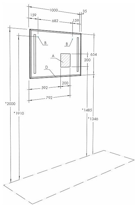 | Комплектация | зеркало; светильник; полочка; выключатель |