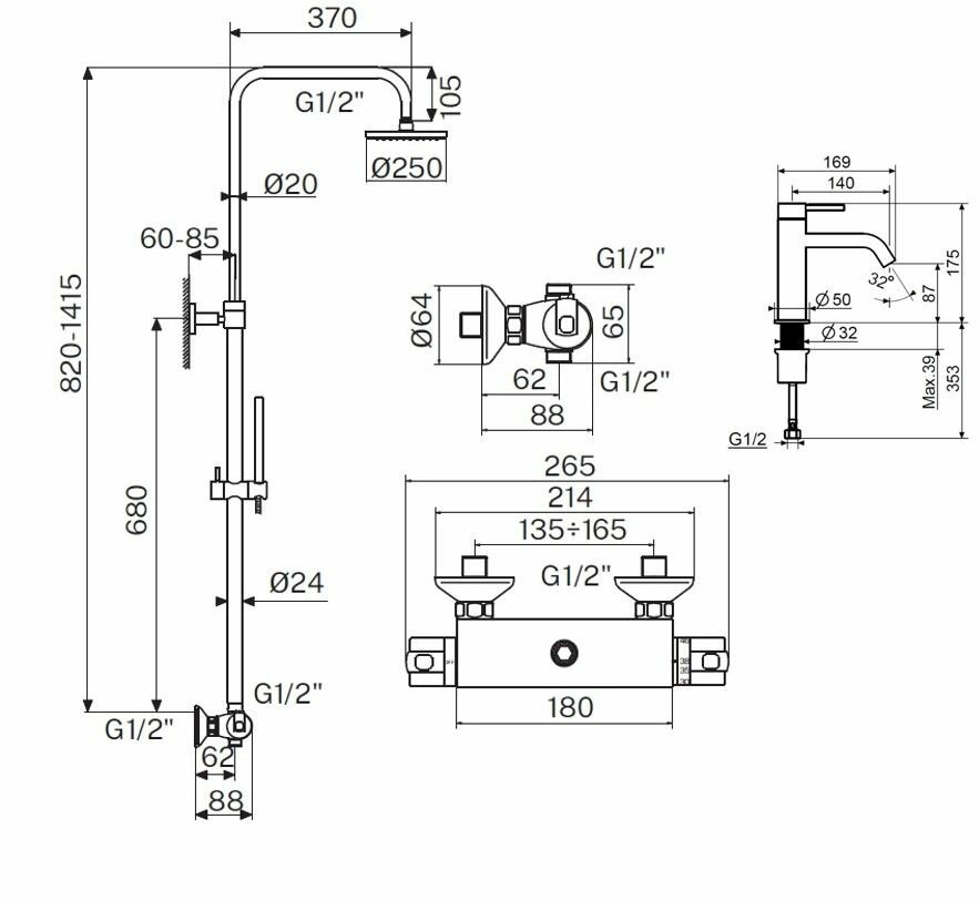 Сервис сравнения цен СкидкаГИД предлагает сравнить цены на товар «Комплект душевой стойки со смесителем и изливом Plumberia Selection IXO KITXO6302NO53 с термостатом, черный матовый»