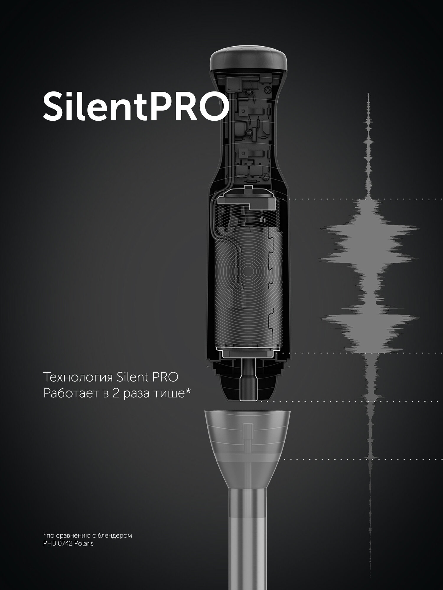 3 в 1, стеклянная чаша измельчителя с ножами Double Blades, технология SilentPRO, 4-х лепестковый нож PRO TITAN, вместительный мерный стакан 0,7 л из небьющегося пластика (BPA fee) с защитной крышкой от брызг, Технология GYROSTART.