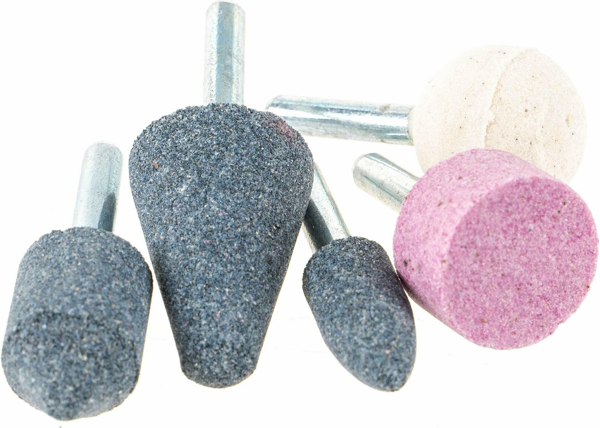 Набор точильных камней имеет специальное абразивное напыление (оксид алюминия, карбид кремния). Используется для шлифовальных и рихтовочных работ при помощи электродрели.